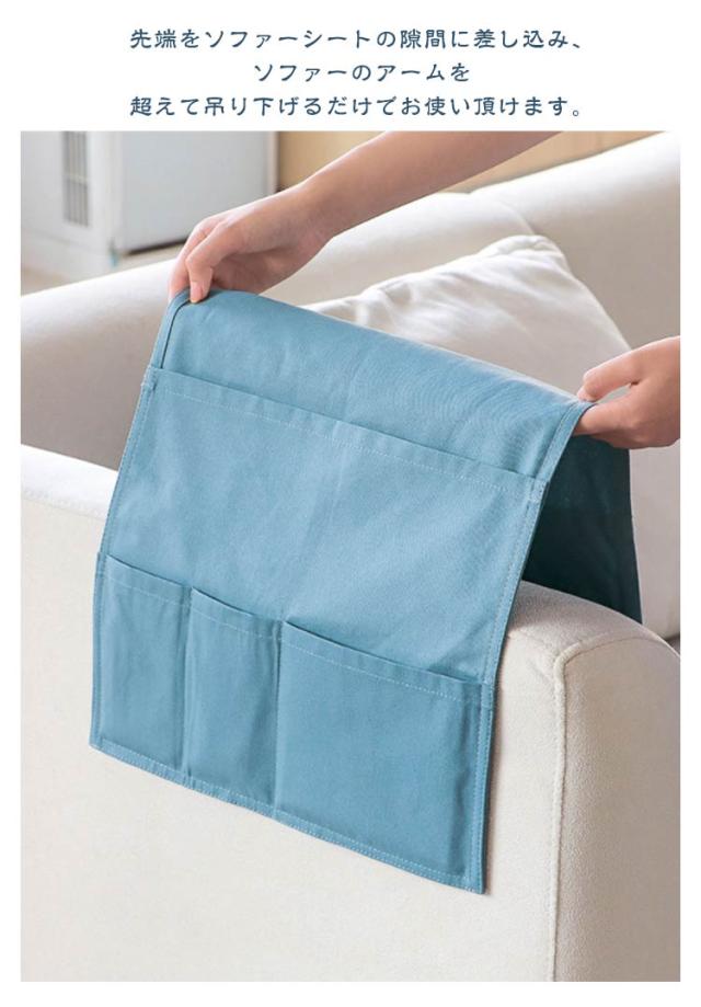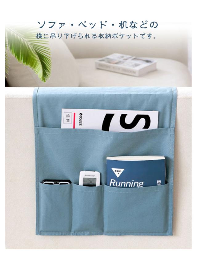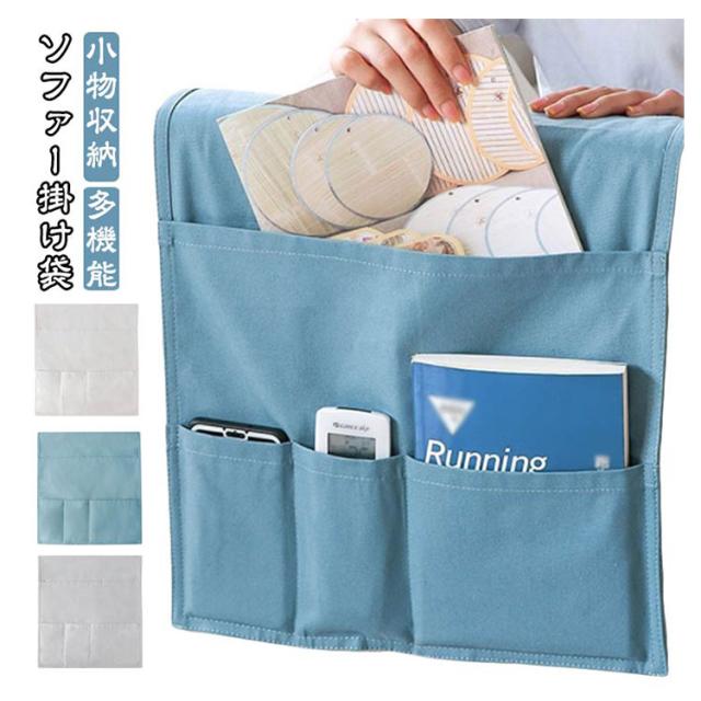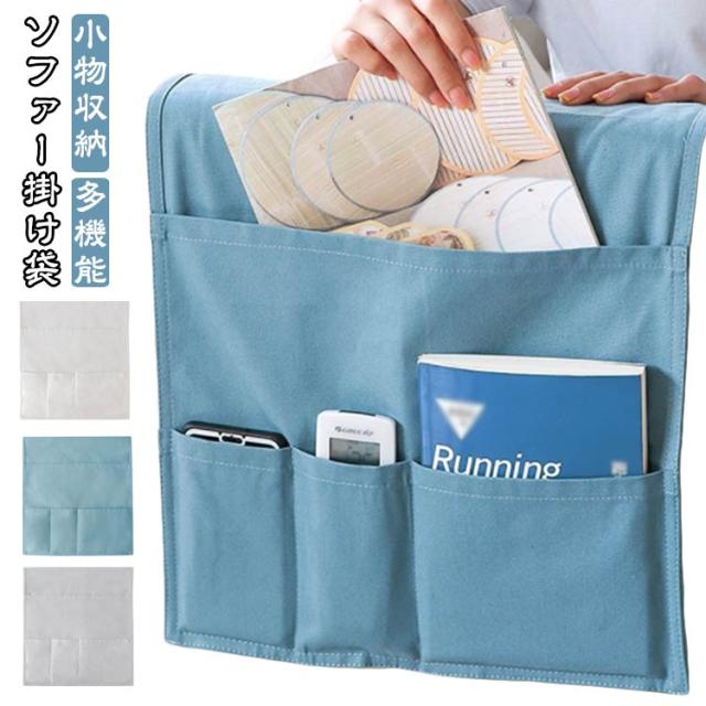 ソファー掛け袋 リモコンポケット サイドポケット 収納ポケット ベットサイド 小物収納 多機能 吊り下げ 耐摩耗 防塵 犬猫対策 防止 汚れにくい 洗える ソファ収納バッグ カバー スマホ 雑誌 小物入れ ブルー ホワイト グレー