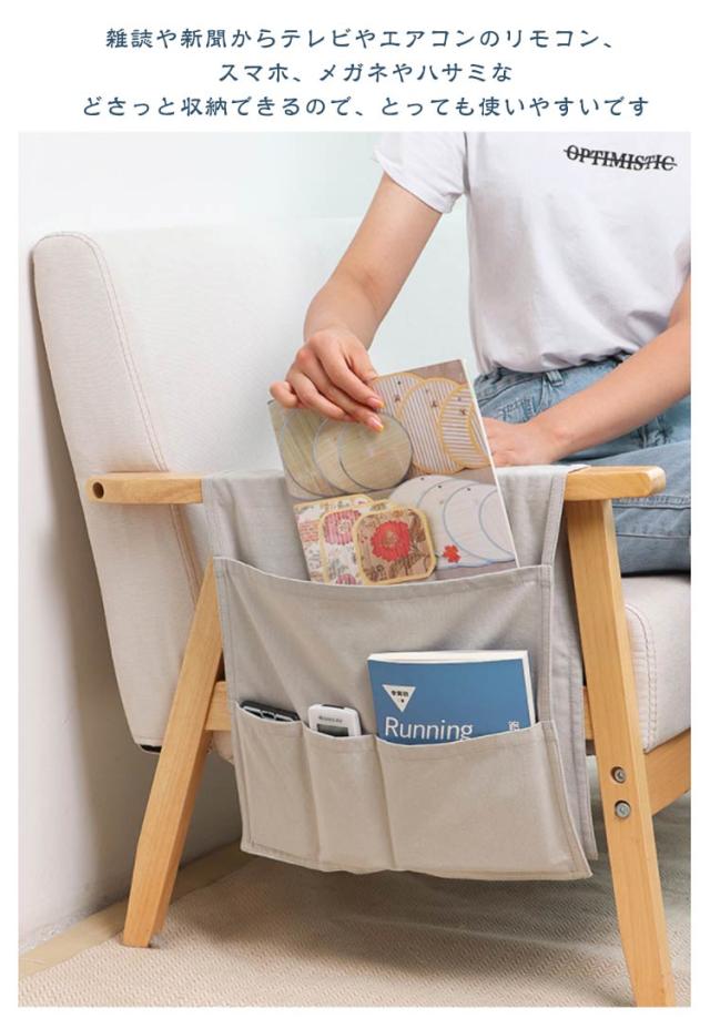 | ソファ・ベッド・机などの横に吊り下げられる収納ポケットです。 様々な小物をスッキリ収納できるリモコンポケットです。ソファの肘掛け部分の汚れ防止にもなります。 雑誌や新聞からテレビやエアコンのリモコン、スマホ、メガネやハサミなどさっと収納できるので、とっても使いやすいです 先端をソファーシートの隙間に差し込み、ソファーのアームを超えて吊り下げるだけでお使い頂けます。 部屋の整理整頓への効果は勿論、手元に収納を集約できるので生活導線もスムーズかつ能率的になります。 | |