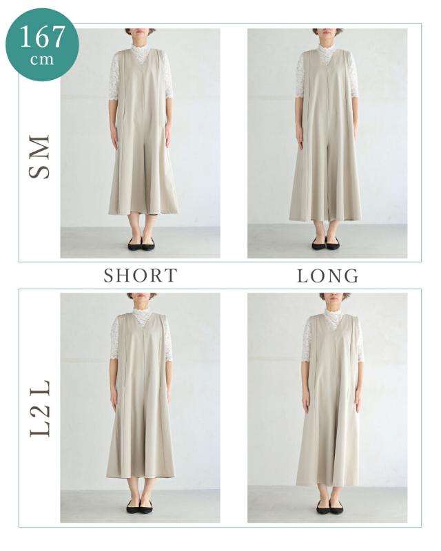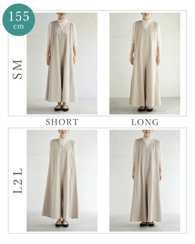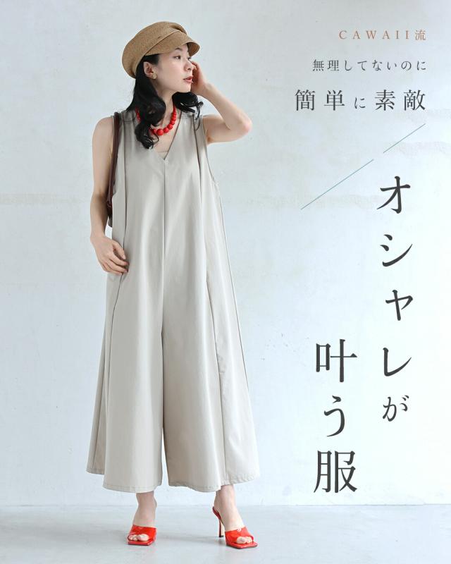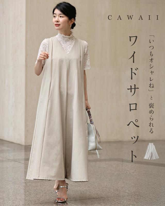 再入荷9月5日 「いつもオシャレね」と 褒められるワイドサロペ cawaii wkj00236 SM/L2L対応 ショート/ロング丈展開 オールインワン Vネック ベージュ オシャレ 個性的 大人可愛い エレガント 上品 春服 春物 夏服 夏物 レディース ファッション ミセス 30代 40代 50代