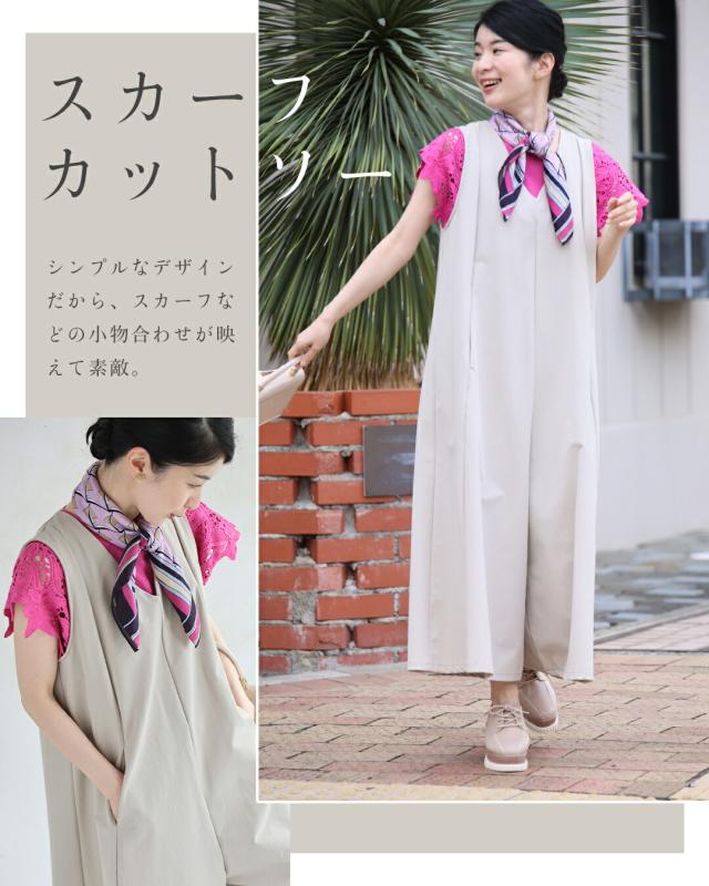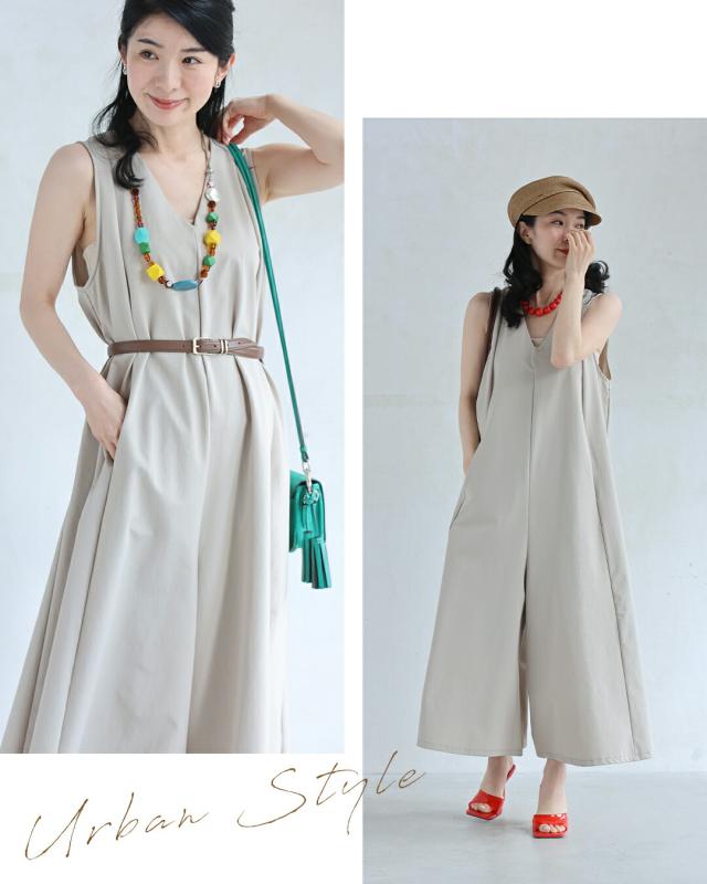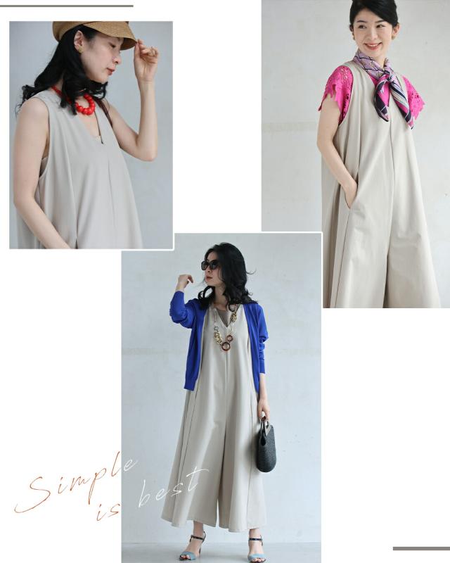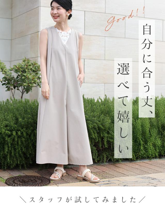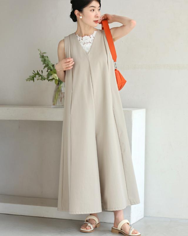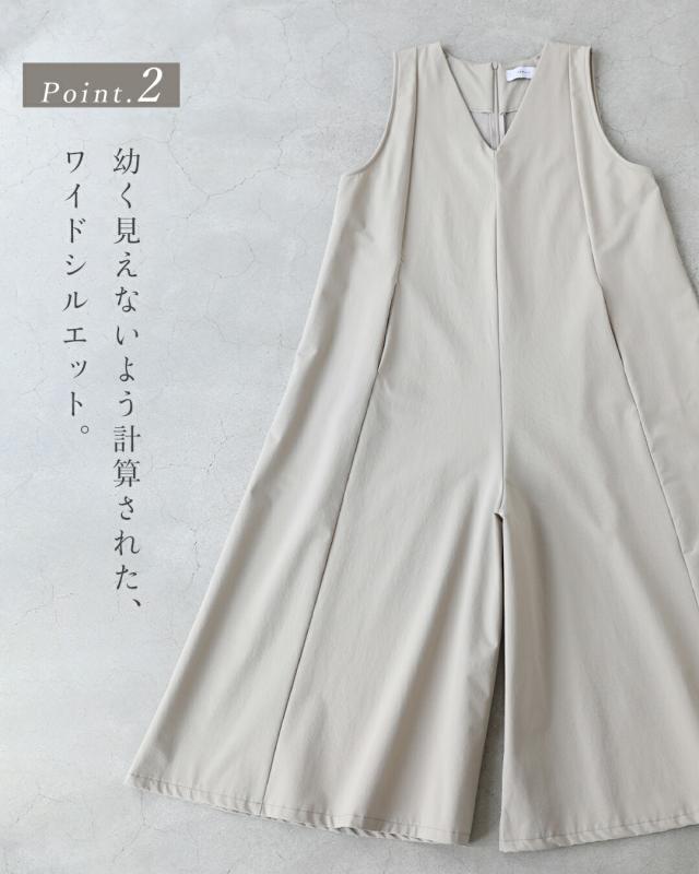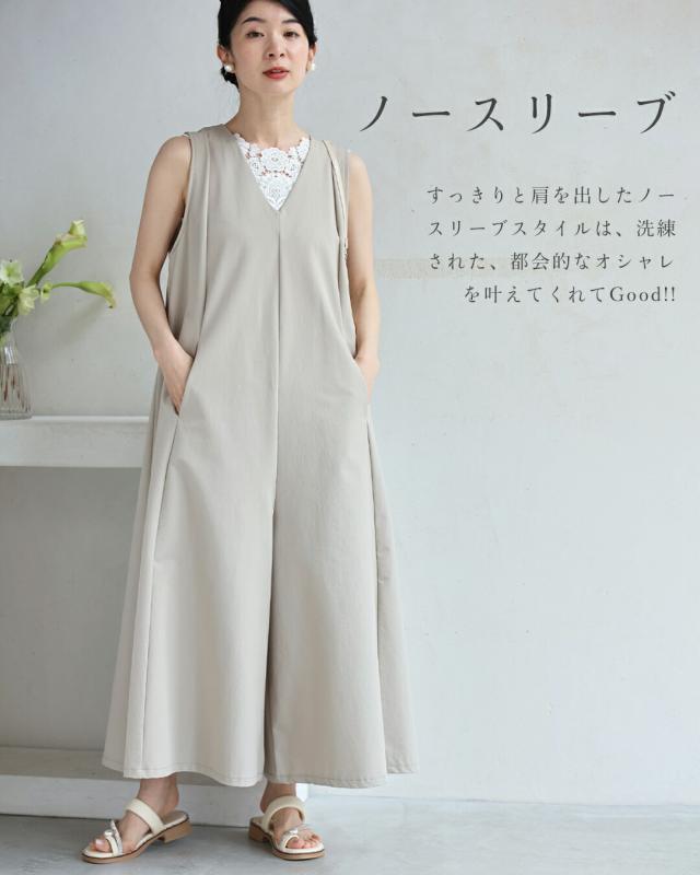wkj00236 新作 新着 再入荷 CAWAII FRENCHPAVE フレンチパヴェ エレガント ベーシック カジュアル 可愛い かわいい カワイイ おしゃれ オシャレ お洒落 個性 個性的 定番 ベーシック 大人かわいい 大人可愛い 上品 女性らしい デザイン スタンダード ナチュラル きれいめ キレイめ シンプル フェミニン レディース レディースファッション 大人 ママ ミセス 30代 40代 50代 60代 いつもオシャレ 褒められる ワイド サロペ オールインワン Vネック S M L 2L 小さめ 小さいサイズ 低身長 痩せ ほっそり 小柄 細身 サイズ展開 ゆったり 標準 薄手 涼感性 涼しい ずずしい 春 夏 秋 春服 春物 夏 夏服 夏物 軽やか 軽量 ワイド ベージュ 無地 ワンカラー 体型カバー 下半身カバー お尻隠し 太もも隠し 段着 日常使い ヘビロテ おでかけ 旅行 動きやすい アウトドア 公園