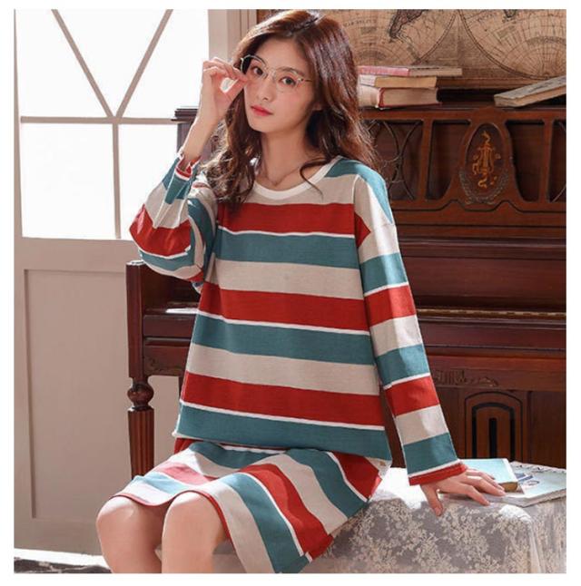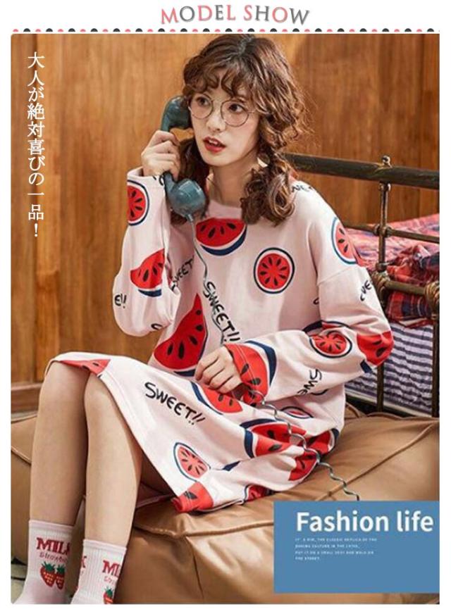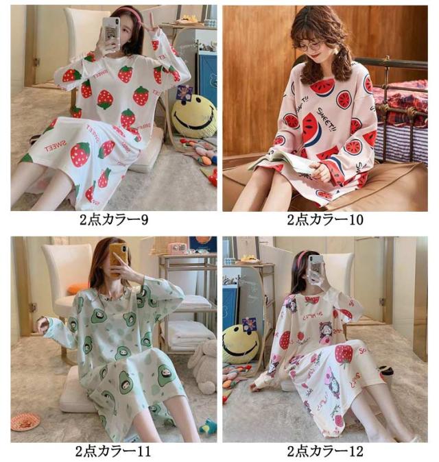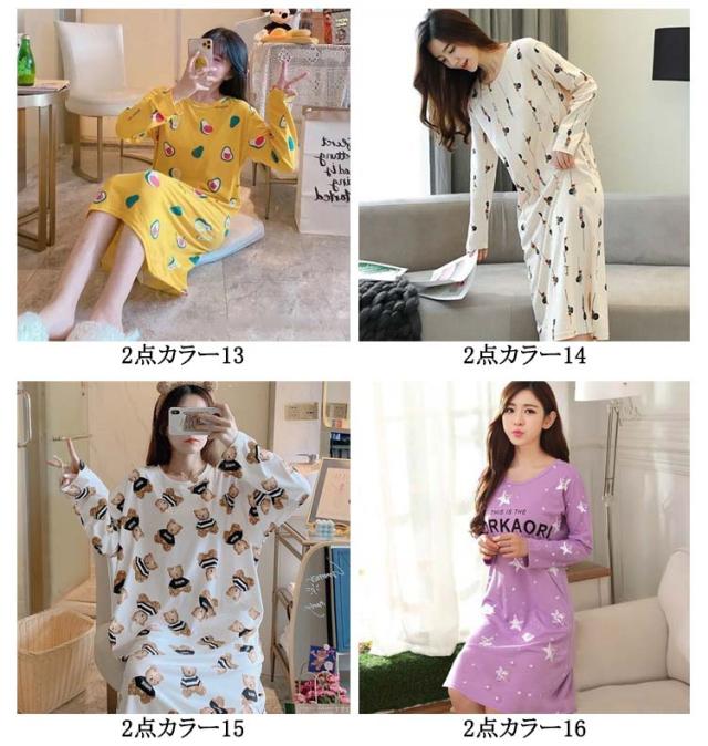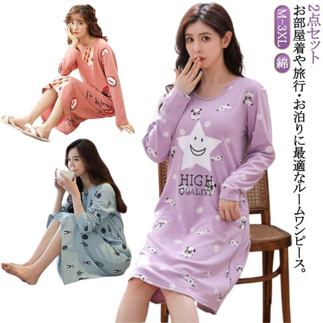 【2点セット】ルームウェア レディース ルークワンピース 長袖 パジャマ 綿 ナイトウエア ルームワンピ Tシャツワンピース ホームワンピース 寝間着 かわいい 夏 春 秋 肌触り抜群 おうち時間 M L XL 2XL 3XL