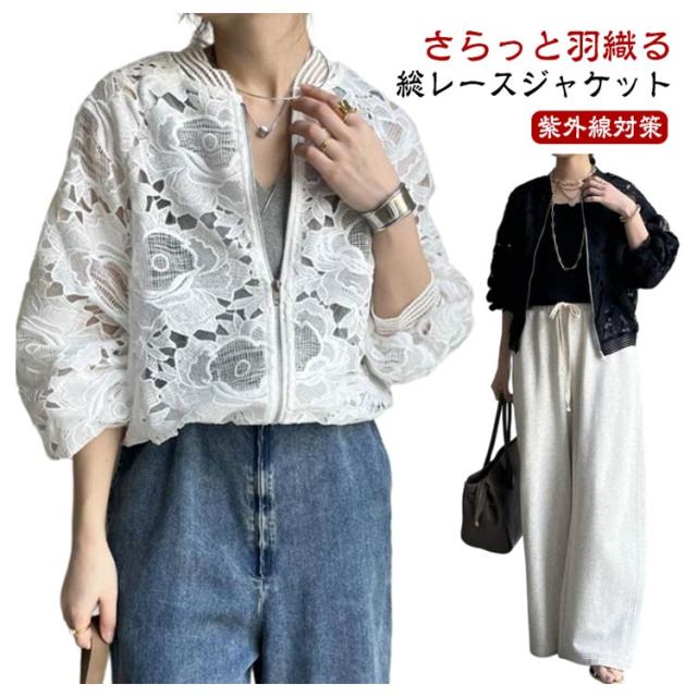 レース レディース ジャケット 花柄 夏 透け感 ジャケット ライトアウター ブルゾン 軽アウター 春 長袖 UVカット 刺? 日焼け防止 UV対策 紫外線対策 長袖 冷房対策 女性用 大人 女の子 ママ 大きいサイズ おしゃれ リゾート ビーチ