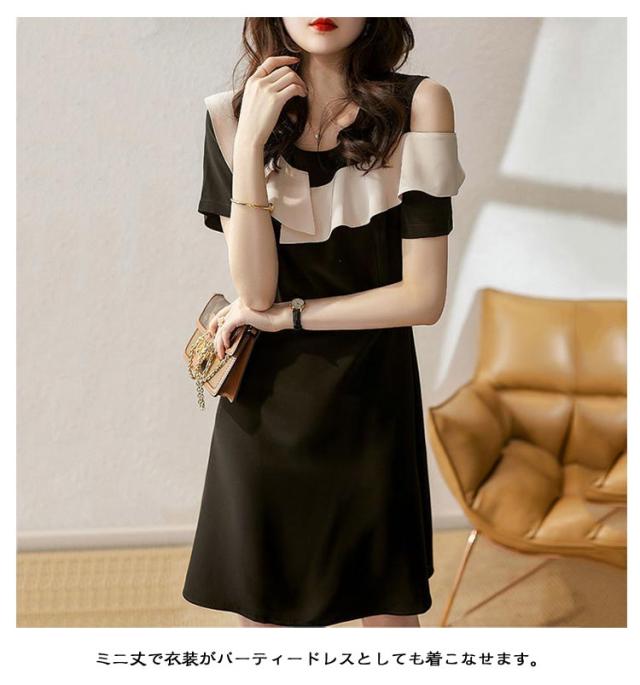 肩出し ワンピース 半袖 オフショルダー きれいめ ミニ 大人可愛い ミニワンピース キャバドレス セクシー 秋 パーティードレス aライン 春 大人 夏 オープンショルダー 肩だし ミニドレス 黒