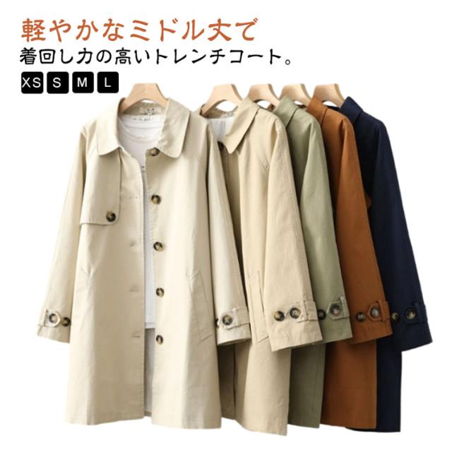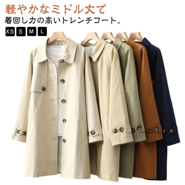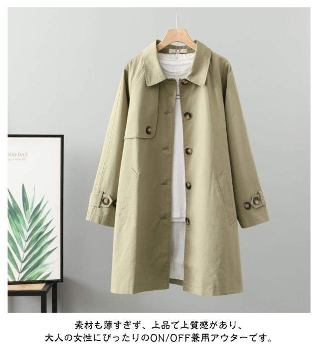 コート 秋 アウター ライトアウター トレンチコート ロングコート ジャケット 羽織り 上着 スプリングコート トレンチコート ミモレ丈 アウター 春 ロングジャケット ロングコート 無地 体型カバー ゆったり 綿