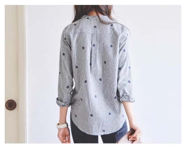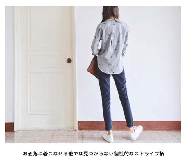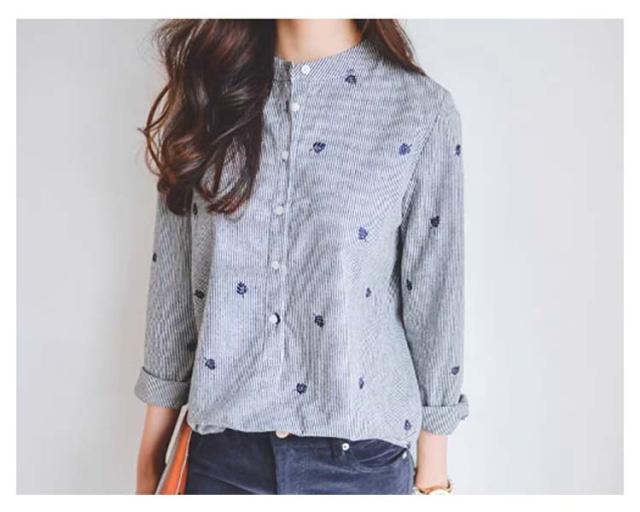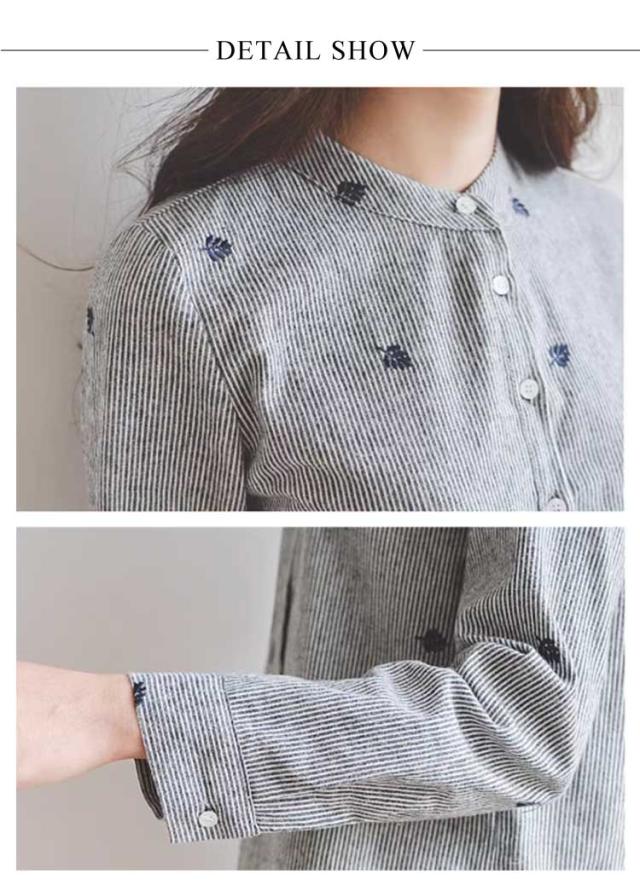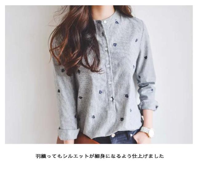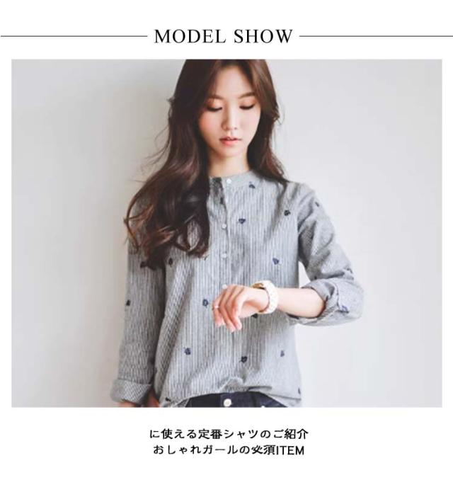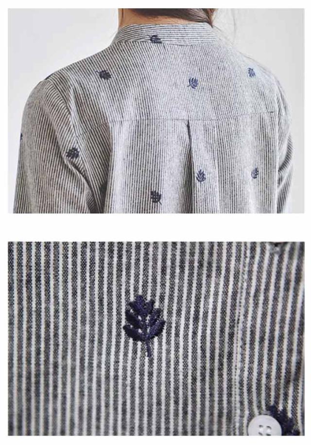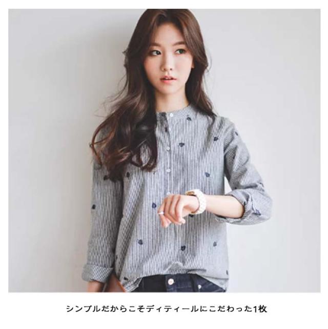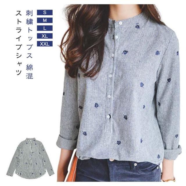 春 シャツ かわいい 刺繍トップス 長袖シャツ 刺繍トップス レディース トップス カジュアルシャツ 女性 レディースファッション 長袖 スタンドカラー カレッジ風 刺繍 文芸 ストライプシャツ 無地 シンプル ゆったり