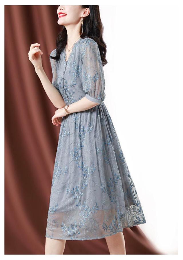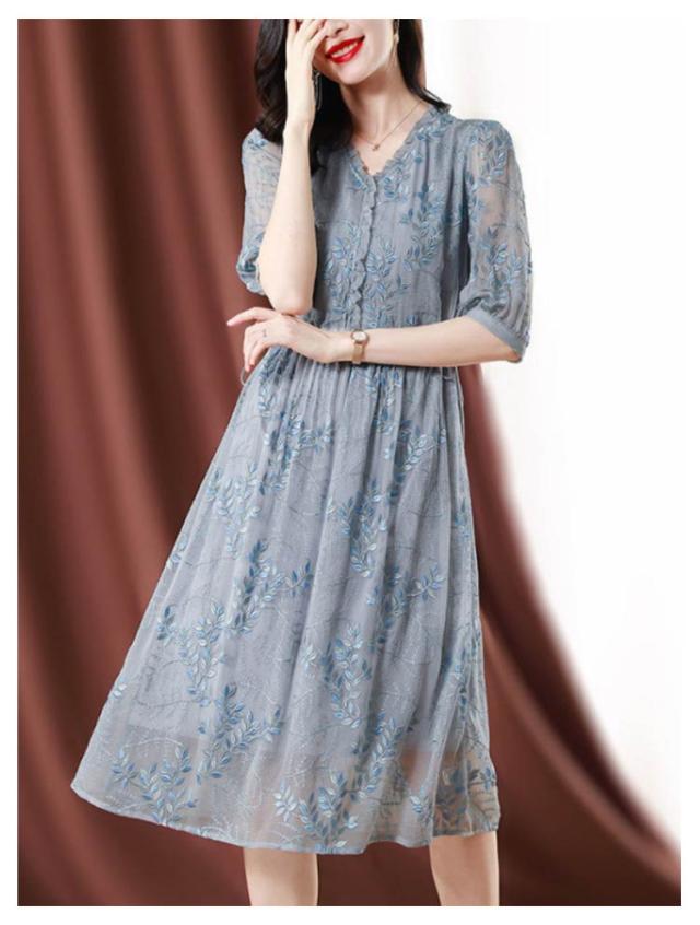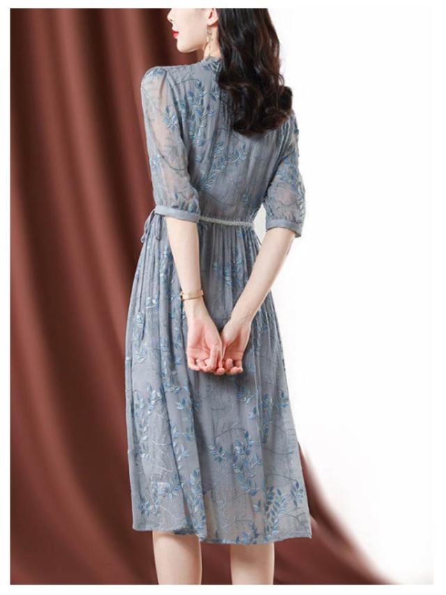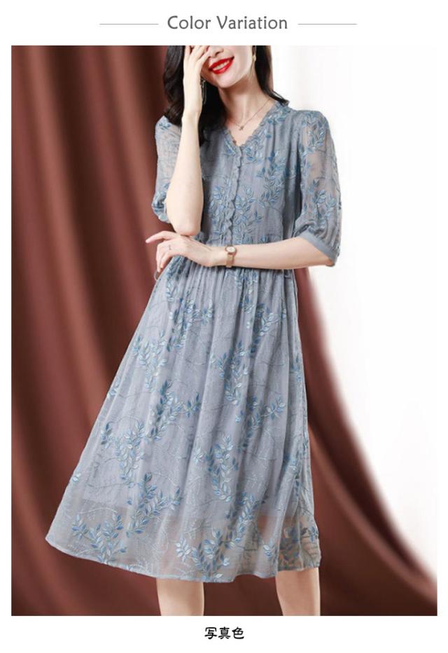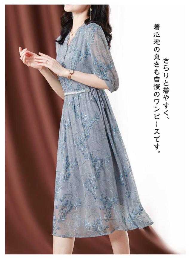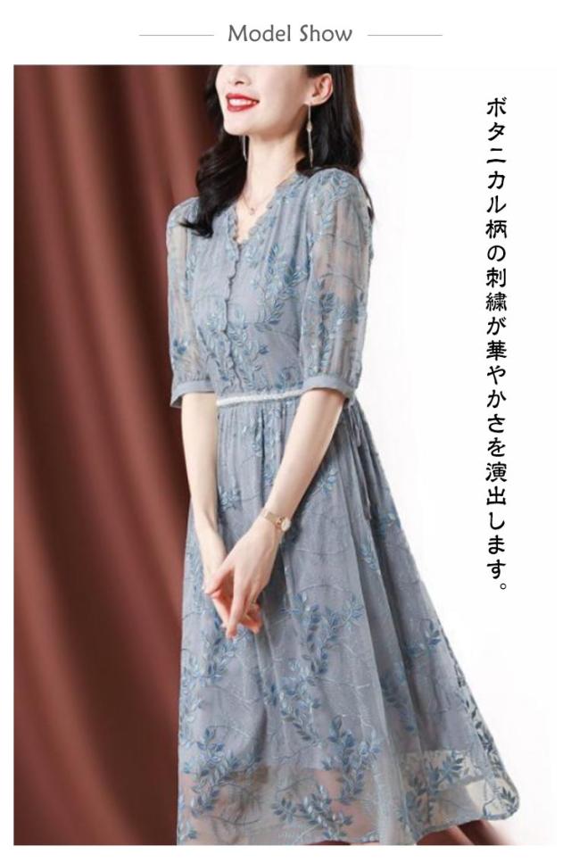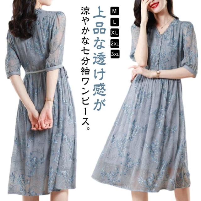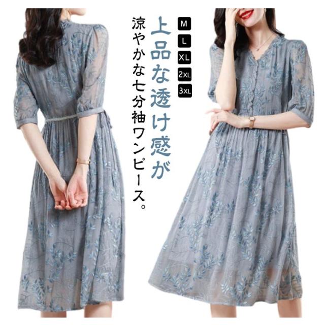 | 上品な透け感が涼やかな七分袖ワンピース。 ボタニカル柄の刺繍が華やかさを演出します。 さらりと着やすく、着心地の良さも自慢のワンピースです。 | |