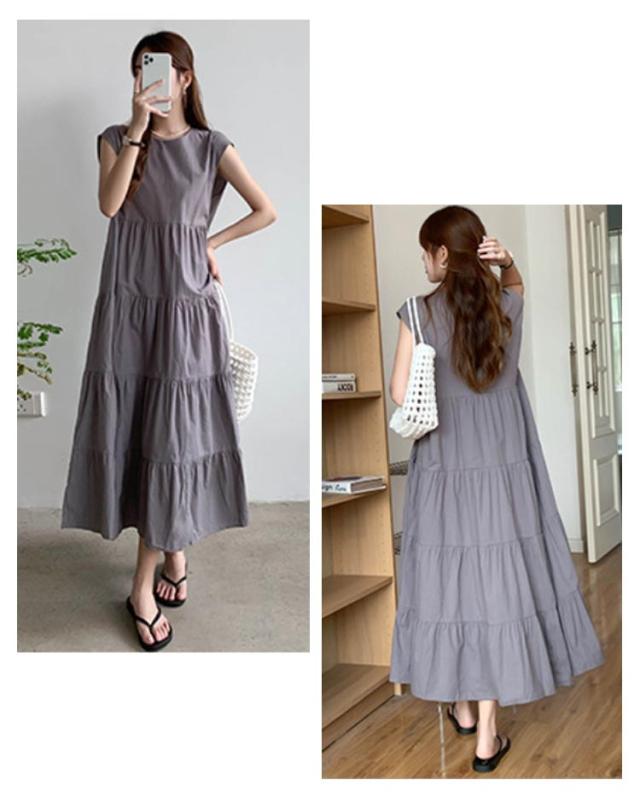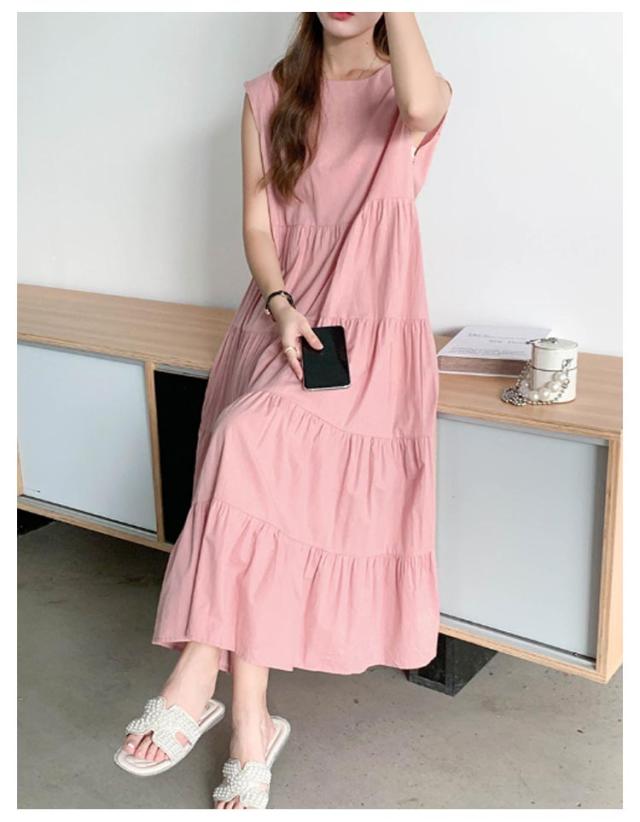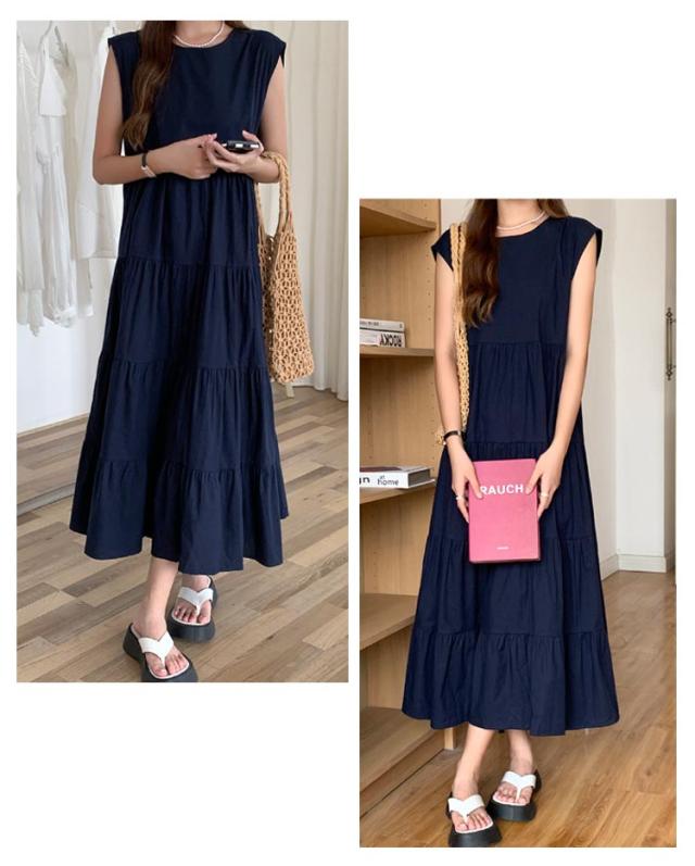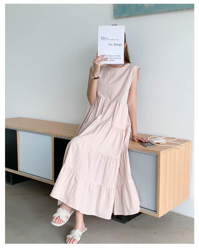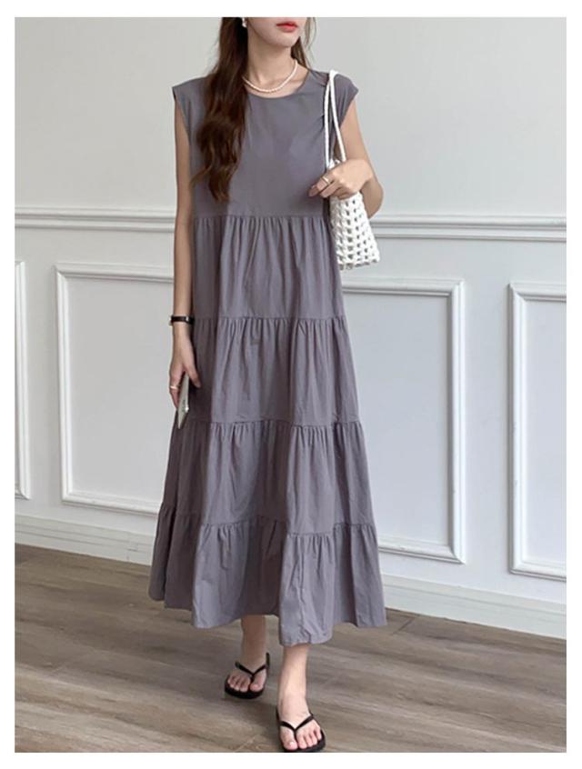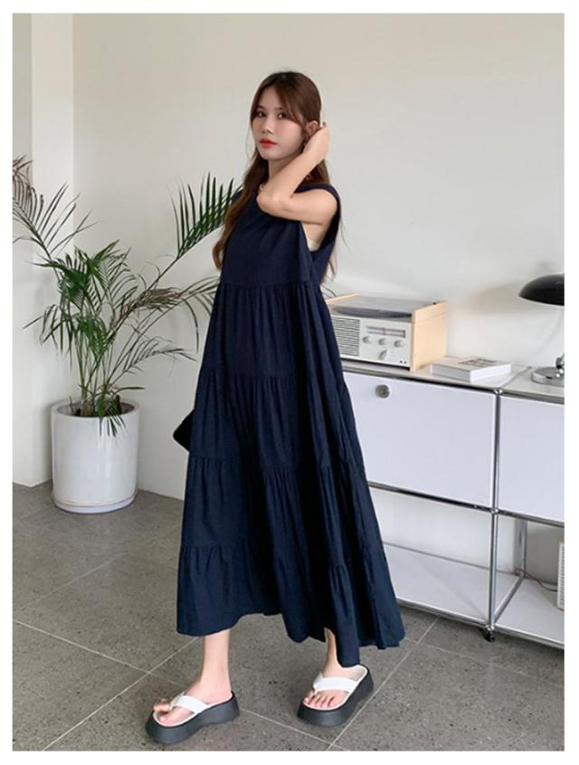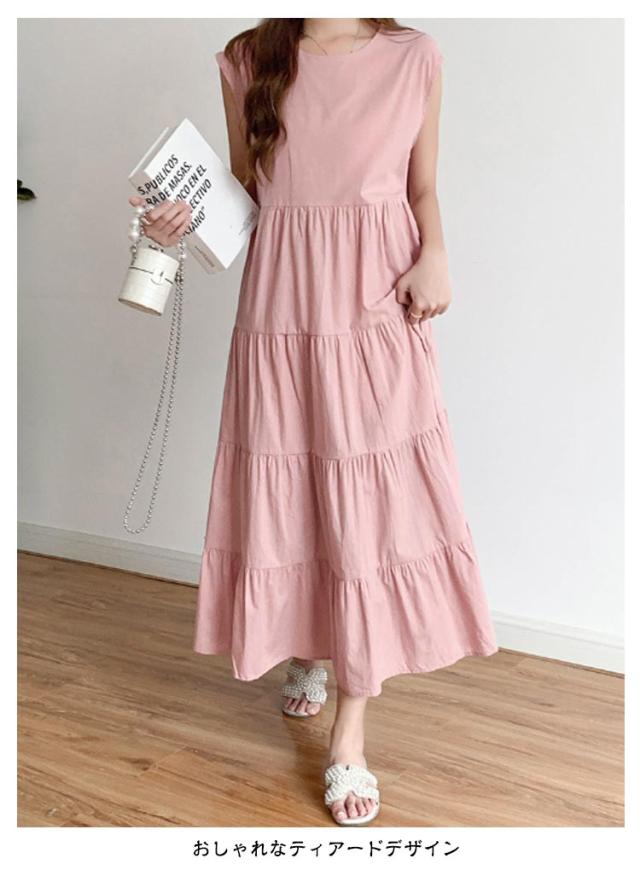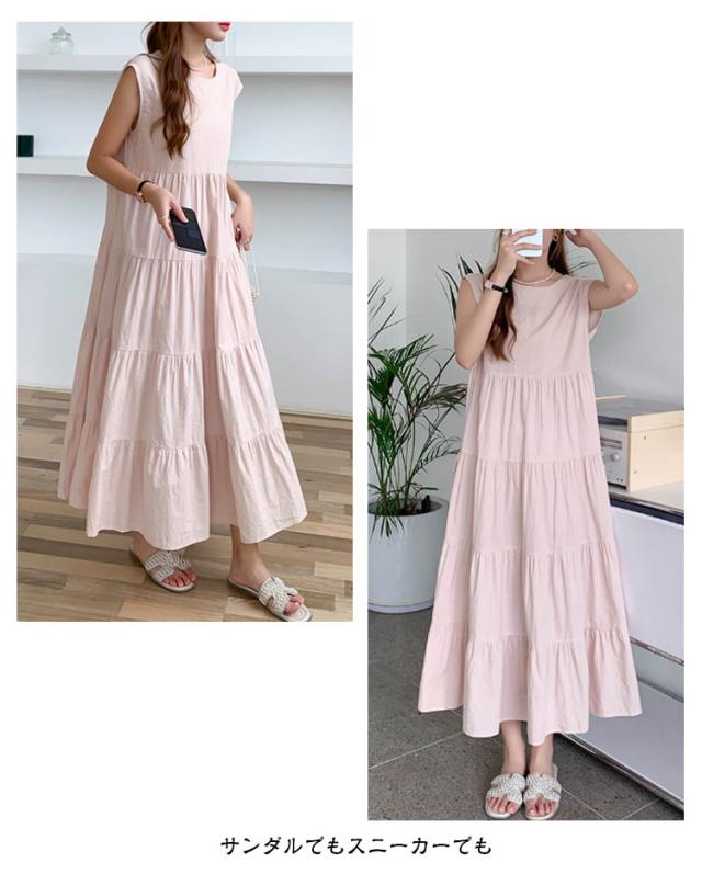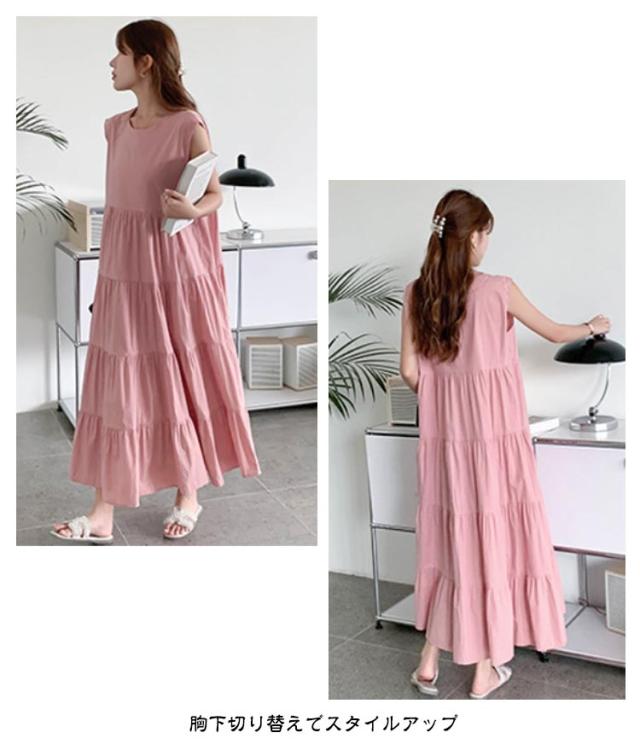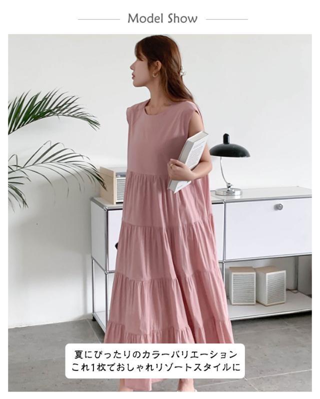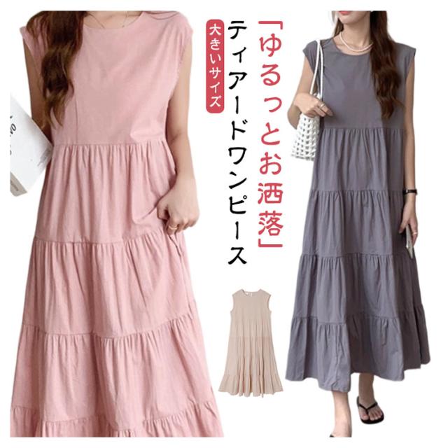 ヴィンテージ 夏 ティアード ふんわり 大きいサイズ ノースリーブ 無袖 ゆったり レディース 春 ワンピース リゾート ロング丈 ティアード ガーリー ワンピース 体型カバー シンプル ワンピース 旅行 ビーチ ネイビー ベージュ グレー
