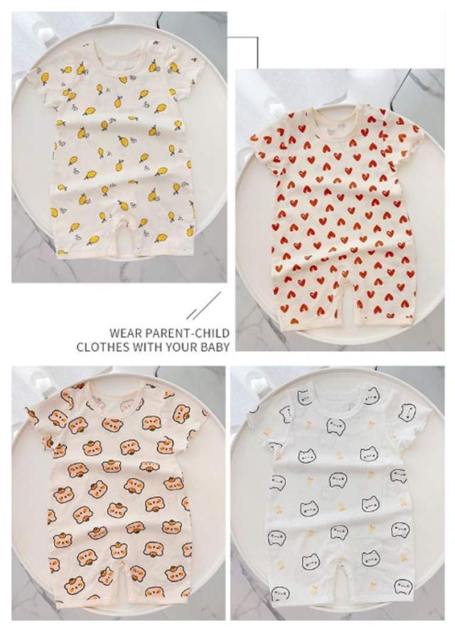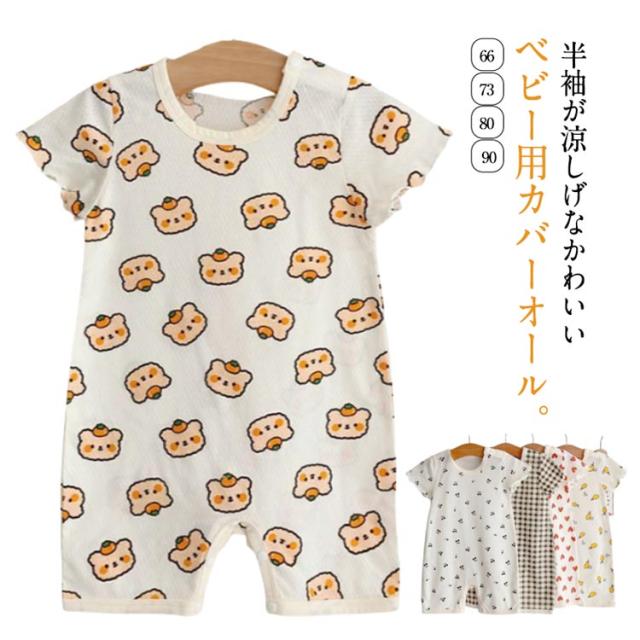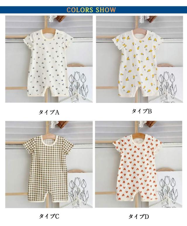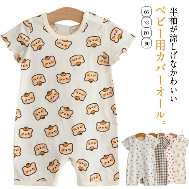 | 半袖が涼しげなかわいいベビー用カバーオール。 丈夫でお肌に優しいコットン素材で部屋着やお出かけ着に重宝します。 生地はやわらかくストレッチが効いていてとてもよく伸びるので着せやすく動きやすい。 生まれてくる赤ちゃんの出産準備用品もしくは出産祝いとしてとても喜ばれます | |
