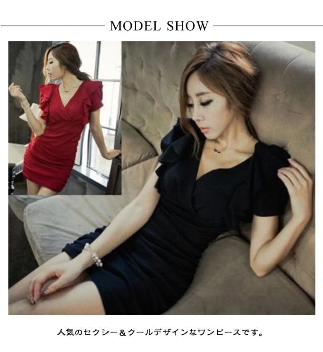 ワンピース 春夏 無地 ミニ パーティードレス キャバ タイト ドレス 大人可愛い キャバワンピ ミニドレス セクシー キャバドレス キャバドレス 秋冬 フリル ボディコン カシュクール 超ミニ 半袖 大きいサイズ 黒