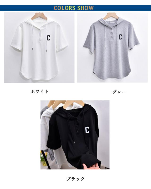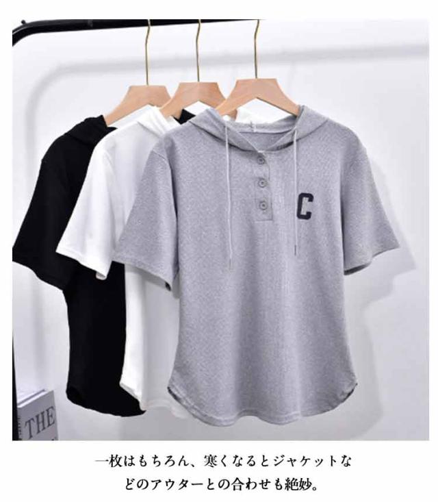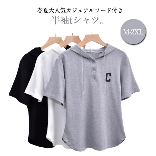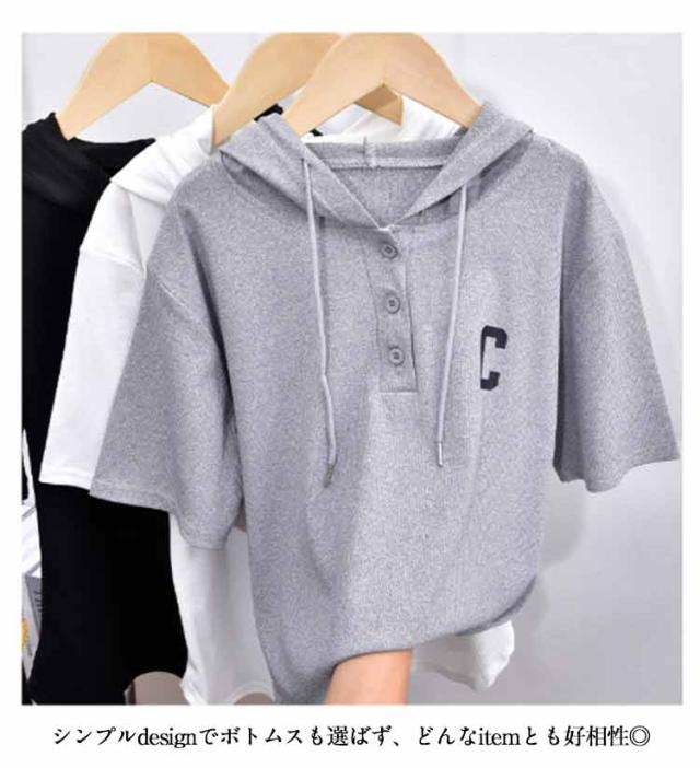 トップス パーカー L 夏 tシャツ カットソー レディース ゆったり 半袖パーカー 夏パーカー 五分袖 プルオーバー 半袖 トップス 半袖パーカー 春夏 フード付き 夏用パーカー シンプル コンパクト ショート丈 M パーカー XL 2XL