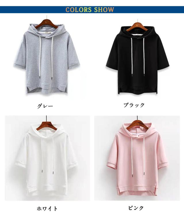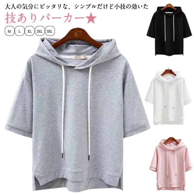 半袖パーカー 五分袖 おしゃれ 夏服 ゆったり 薄手 フード付き Tシャツ プルオーバー カットソー トップス カジュアル 半袖パーカー レディース トップス 春夏 サマーパーカー 夏パーカー フレンチスリーブ シンプル ゆったり 大きいサイズ スポーティ 着回し