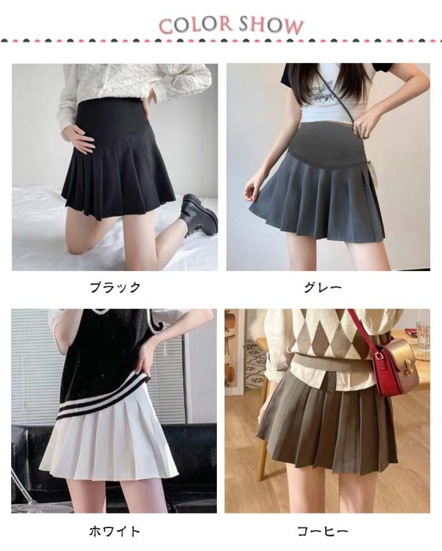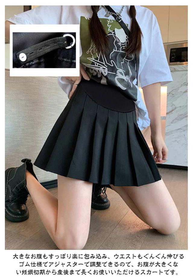 痩せ見せ 可愛い ショート丈 スカート エレガント お洒落 マタニティスカート ミニスカート シンプル マタニティウェア 妊婦服 脚長 プリーツスカート プリーツスカート 春夏 着痩せ ボトムス 妊娠 アジャスター付き プリーツ ミニ 無地