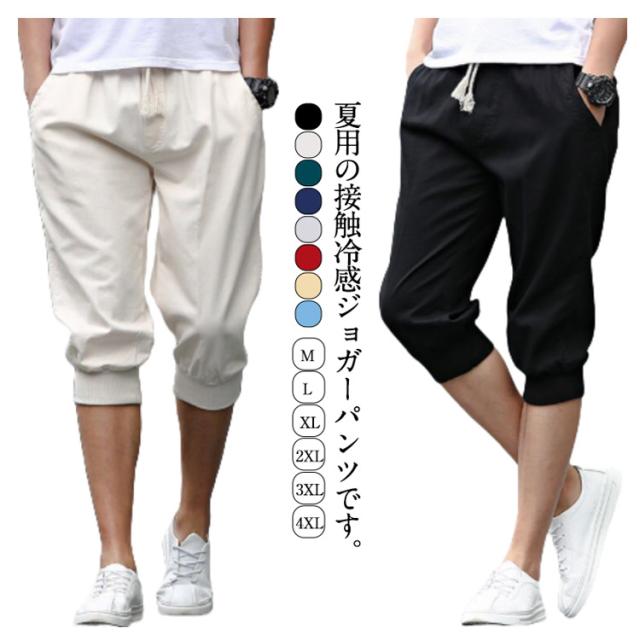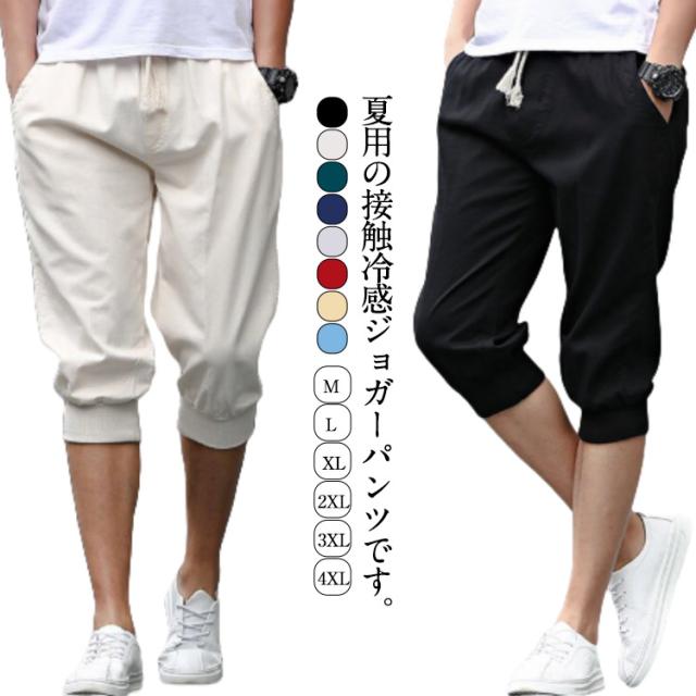 ジョガーパンツ クロップドパンツ 涼感 接触冷感 ドライストレッチ ストレッチ ジョガーパンツ ひざ下 涼しい ボトムス スウェットパンツ カジュアル パンツ ハーフパンツ イージーパンツ スポーツ 薄手 吸汗速乾 ズボン ゆったり 夏 部屋着 無地 お出かけ