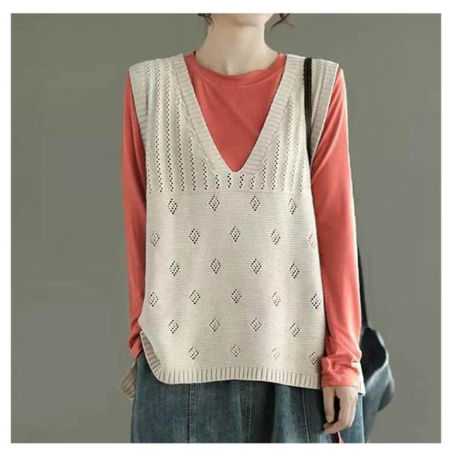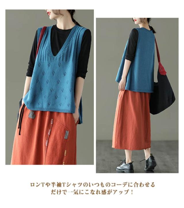 透かし編み ニットベスト レディース サマーベスト ノースリーブ ベスト ジレ サマーベスト 春夏 ニット セーター プルオーバー トップス 大きいサイズ 着?せ レイヤード お洒落