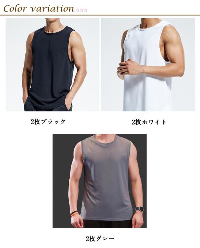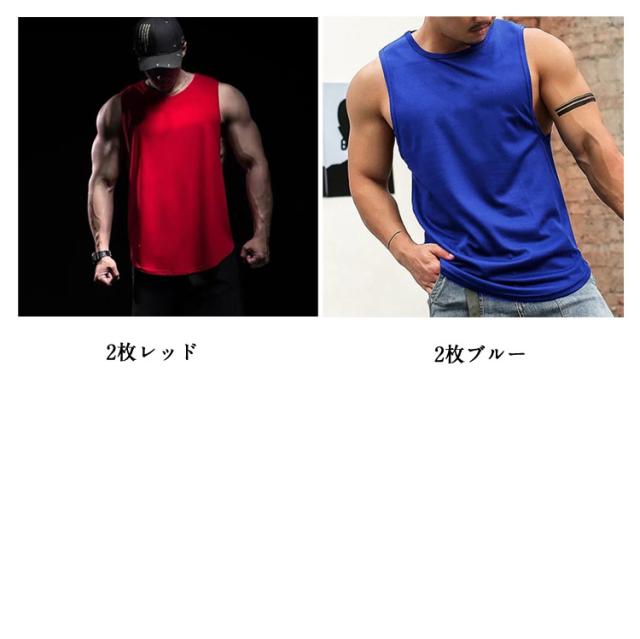 2枚セット スポーツウェア無地 サッカー ジム ノースリーブ メンズ タンクトップ フィットネス 2枚セット 吸汗 速乾 運動着 タンク 涼しい メッシュ 通気性に優れた生地