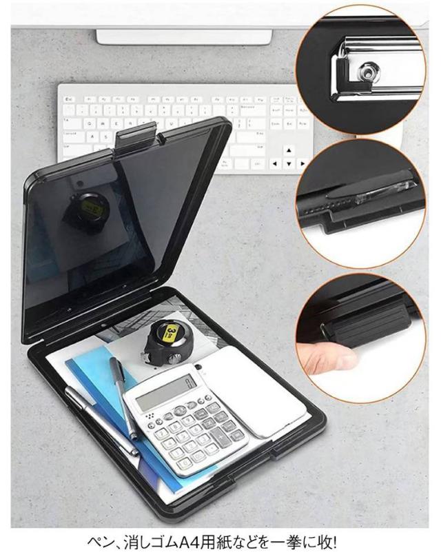 | 筆記用具をひとまとめ A4クリップボード ペン、消しゴムA4用紙などを一拳に收?! 手軽に持ち歩ける | |