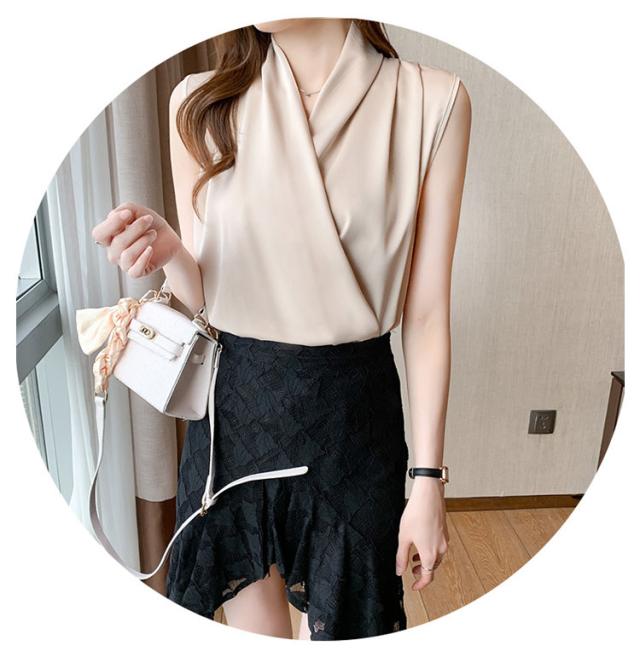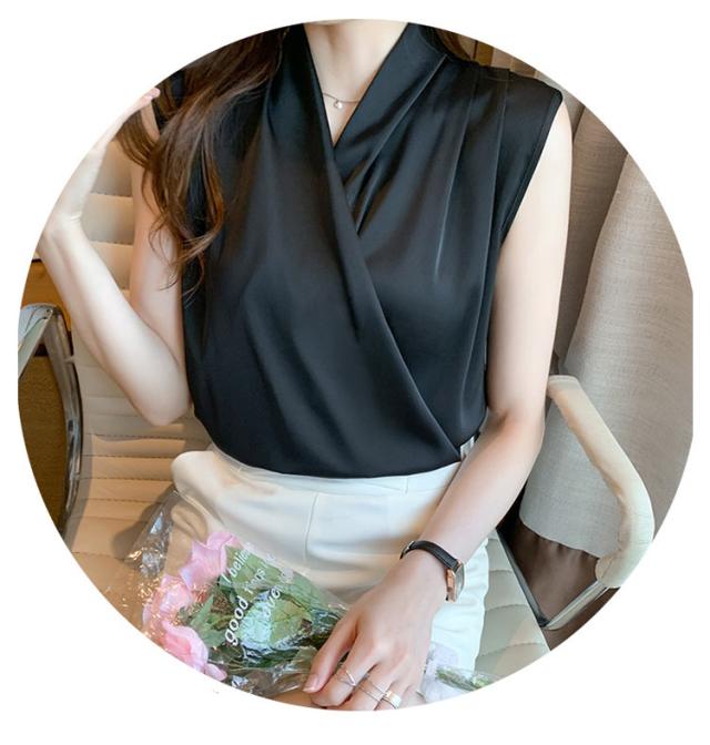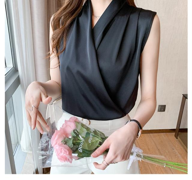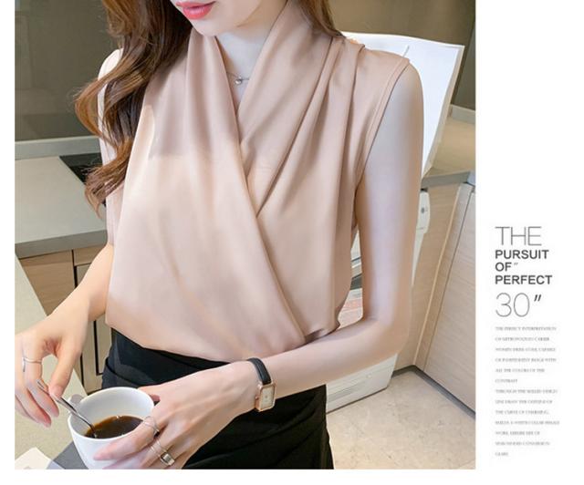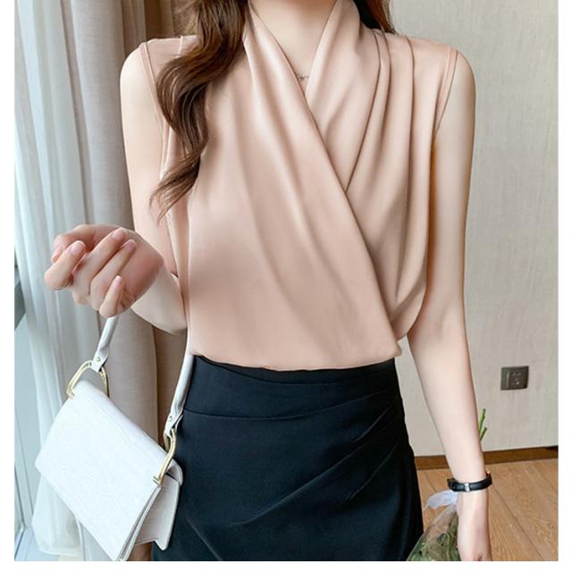 通勤 カシュクール 送料無料 シャツ ブラウス トップス 送料無料 袖なし 涼しい シャツブラウス 春 夏 ノースリーブ Vネック 大人 上品 おしゃれ オフィス タンクトップ かわいい きれいめ 韓国