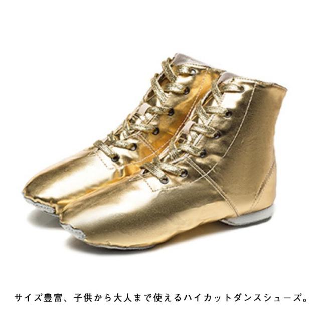 | シルバー/ゴールド! サイズ豊富、子供から大人まで使えるハイカットダンスシューズ。 様々ダンスをご利用していただけます。 | |
