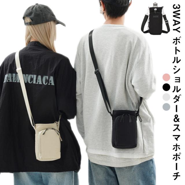 水筒カバー 1l ペットボトルホルダー 水筒 カバー スマホポーチ ナイロン 撥水生地 3way 斜め掛け 500ml-1000ml 水筒ホルダー 水筒ケース ショルダー ストラップ タンブラー 長さ調節可能 持ち運び 公園 砂場 水分補給 プール 運動会 子供 大人 入園入学