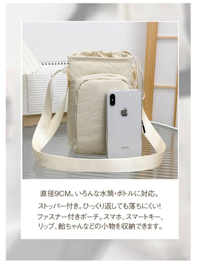 | サイズについての説明 | サイズ:23*10cm ストラップ長さ:70-125cm ボトル:直径9cm以下に対応 ※完全防水ではございません。 |