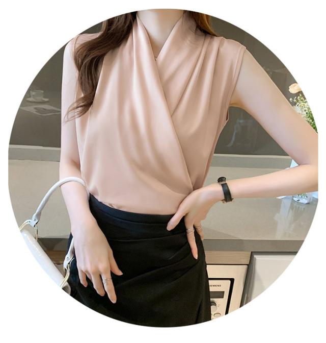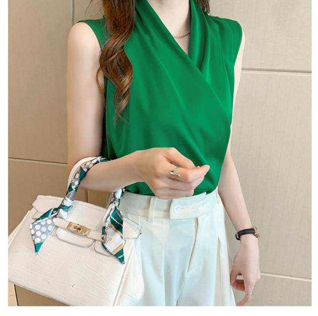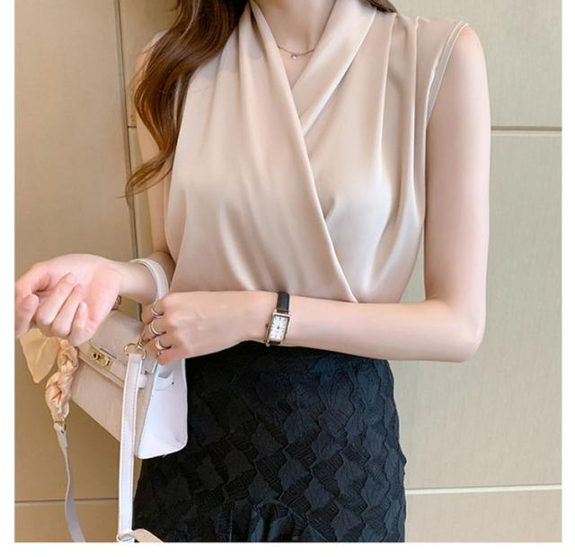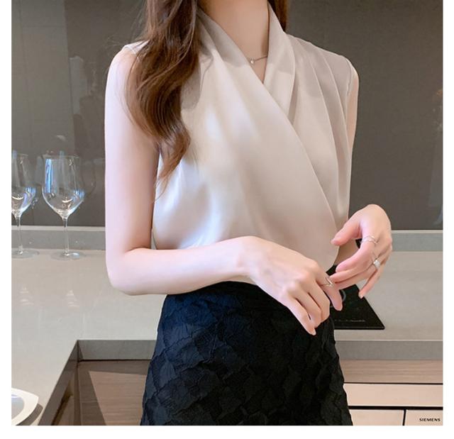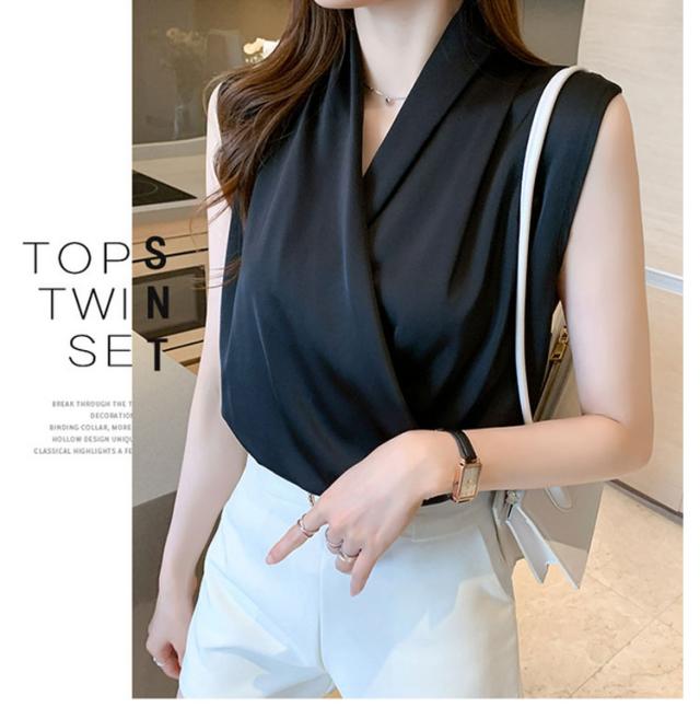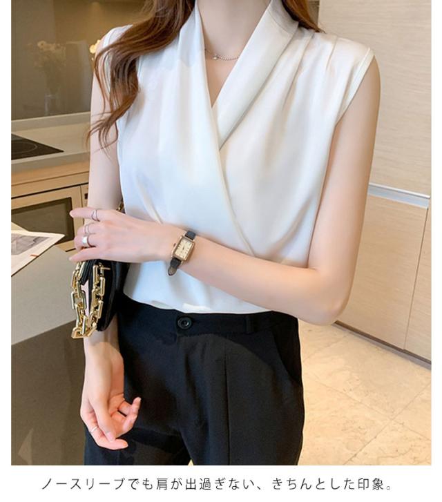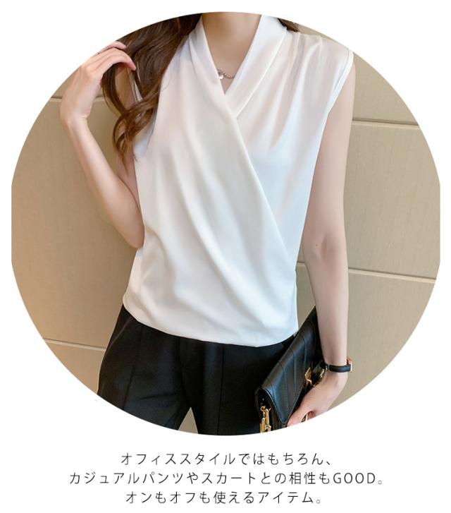 カシュクール 大人 送料無料 オフィス ブラウス タンクトップ シャツ 袖なし トップス シャツブラウス 春 涼しい かわいい Vネック 夏 上品 おしゃれ レディース 通勤 送料無料 きれいめ 韓国