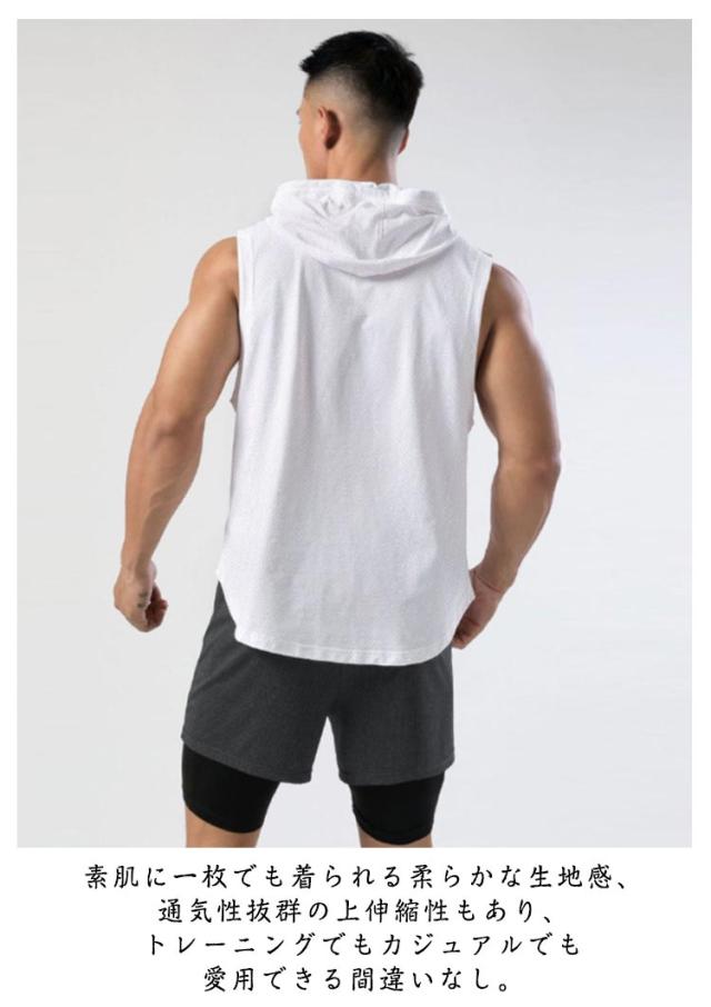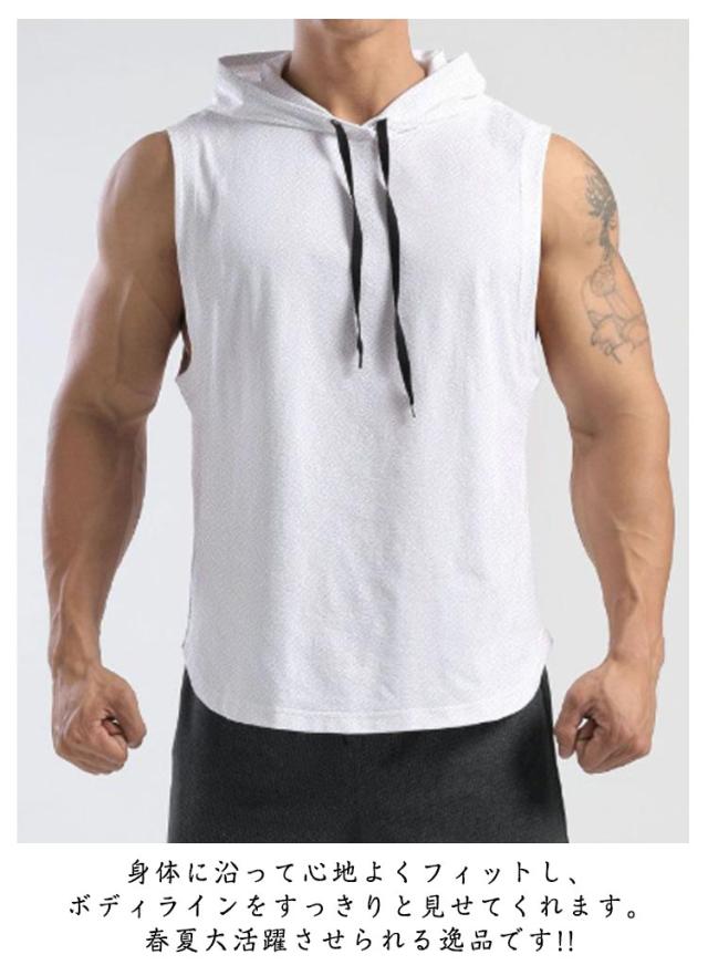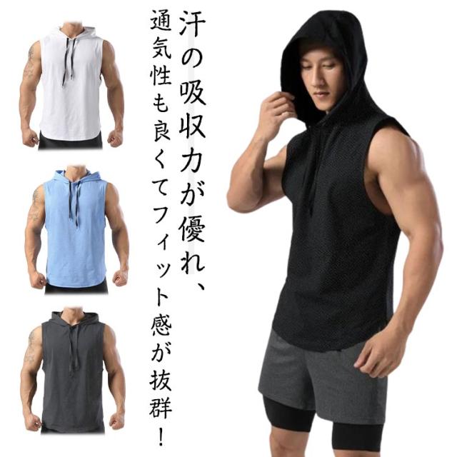 薄手 ノースリーブ スポーツウェア タンクトップ スウェット 袖なし パーカー フード付き トレーニングウェア フード付き ベスト カジュアル 筋トレ メンズ 通気性 トップス カットソー プルオーバー 夏服