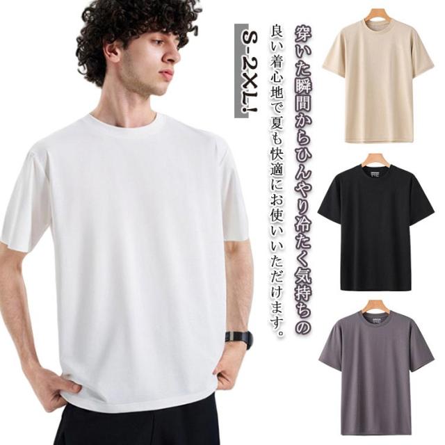 コットン トップス 冷感Tシャツ 接触冷感 涼しい 速乾 吸汗 綿 メンズ インナー クルーネック カットソー 丸首 吸水 冷感Tシャツ 白 ティシャツ ビジネス カジュアル 父の日 プレゼント 夏