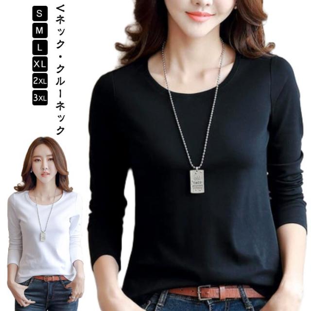 プルオーバー 黒 Tシャツ 白 春 無地 秋 カットソー インナー 白 ブラック 細身 レディース 長袖 Tシャツ Vネック ラウンドネック シンプル 大きいサイズ スリム クルーネック ホワイト S M L XL 2XL 3XL