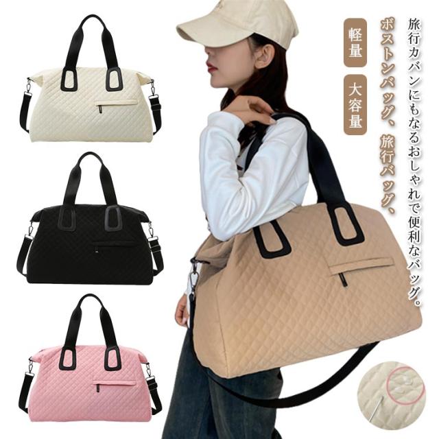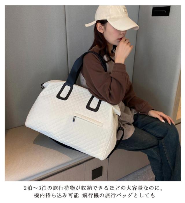 軽量 キャリーオンバッグ 旅行バック キルト 旅行バック カバン 1泊2日 大容量 スポーツ 旅行 ジム 機内持ち込み キャリーオン ボストンバッグ 2泊3日 旅行 バッグ 入院バッグ マザーズバッグ アイボリー ピンク ベージュ