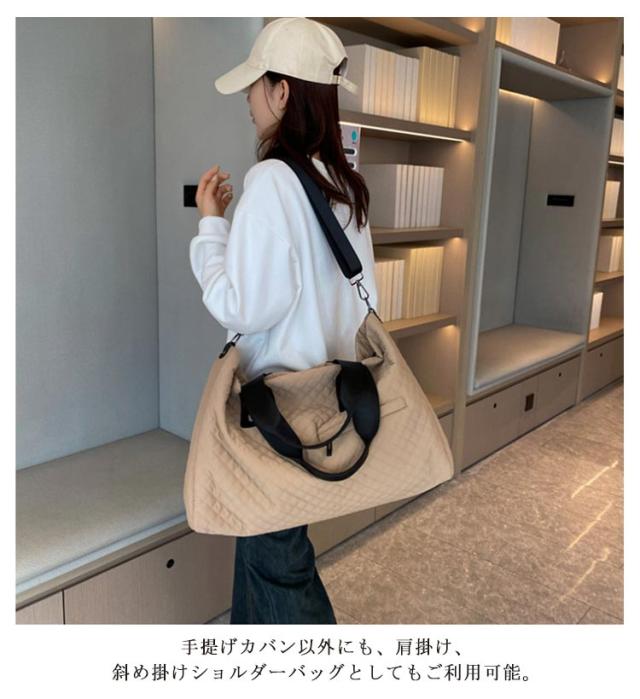 | ボストンバッグ、旅行バッグ、旅行カバンにもなるおしゃれで便利なバッグ。 分厚すぎず、デザインとしてのキルト感、見た目の軽やかさを残してます。 耐久性が高く、撥水性のある生地を採用しているので急な雨でも安心。傷や汚れもつきにくく、シワもできにくいです。 手提げカバン以外にも、肩掛け、斜め掛けショルダーバッグとしてもご利用可能。 シンプルでおしゃれ、軽いので旅行以外にも、ゴルフやフィットネス、ジム、スポーツバッグとしても大活躍 2泊〜3泊の旅行荷物が収納できるほどの大容量なのに、機内持ち込み可能 飛行機の旅行バッグとしても バッグを使わない時は、折り畳めるので、保管時に場所を取りません。 | |