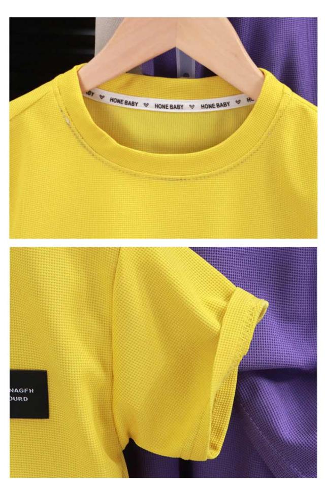 | Tシャツとショートパンツの組み合わせ、夏にぴったりです。 高品質な素材で通気性と柔軟性に優れ、快適な着心地を提供します。 ウエストには伸縮性のあるゴムが配されて、着脱が簡単です。 カラーバリエーション豊富で、涼しい夏を快適に過ごせるアイテムです。 お子様にぴったりの上下セットで、部屋着やパジャマとして最適。 | |