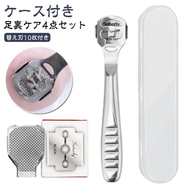 足裏ケアセット 替え刃10枚付き 角質取り 魚の目 治療 ケース付き 足裏ケアセット 簡単 魚の目除去 握りやすい 角質ケア 角質除去 足 角質削り 魚の目取り 削り 魚の目カッター 安全 うおのめ タコ タコの目 カッター かかと ギフト 高齢者 女性