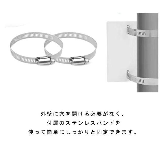 | サイズについての説明 | 取付金具:11*10.5cm ステンレスバンド:直径約10cmx2本/20cmx2本 |