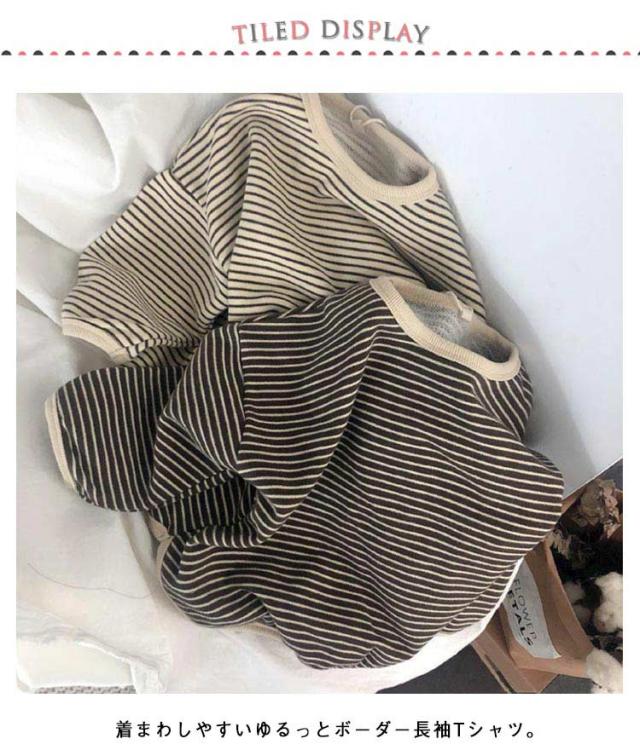 | 【80〜140cm】【綿素材】 着まわしやすいゆるっとボーダー長袖Tシャツ。 シンプルなアイテムだからこそ、ディテールにこだわりました。 程よい厚みのある綿素材でロングシーズンに活躍。 吸汗性が良く、汗ばむ季節にも快適な着心地。 丈夫で型崩れしにくいため、ご家庭でのお洗濯にも適しています。 | |