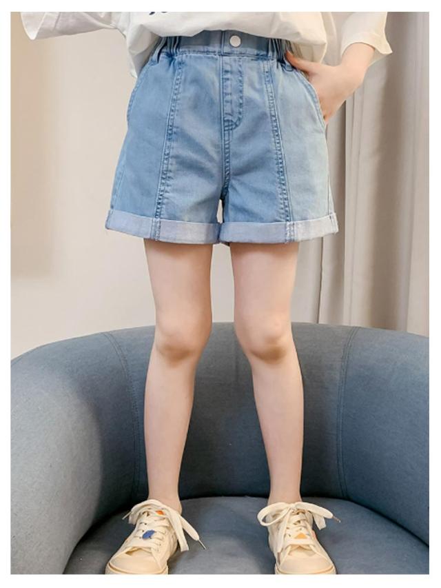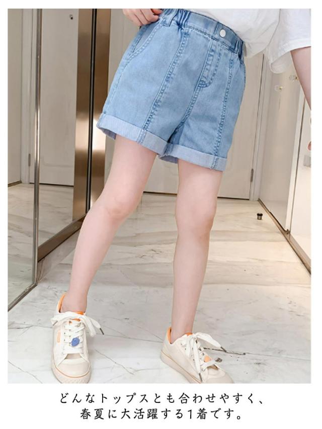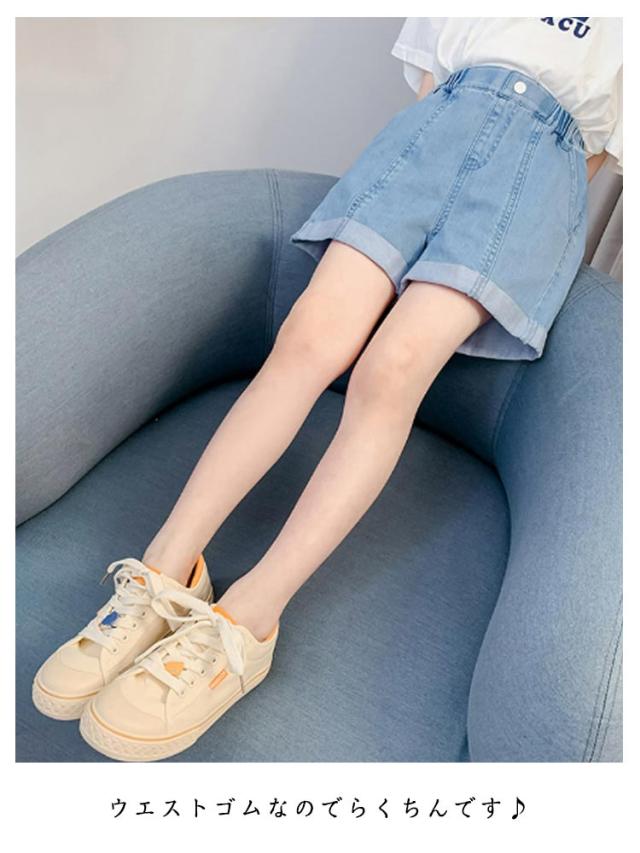 半ズボン デニム デニムパンツ キッズ ショート ウエストゴム ボトムス ガールズ ショートパンツ 子供服 ハイウエスト 短パン 女の子 大きいサイズ ジュニア ガールズ デニム 半ズボン ジーンズ ショート 女児 カジュアル 夏 無地 シンプル