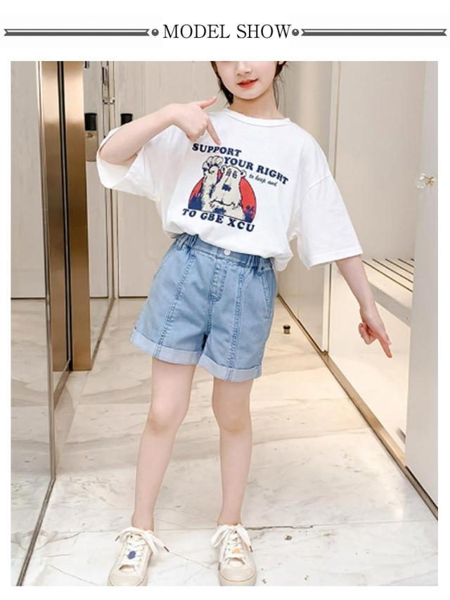 キッズ 大きいサイズ 半ズボン ウエストゴム 女の子 ガールズ デニムパンツ ジュニア ジーンズ ショート ハイウエスト 短パン 子供服 ボトムス デニム ショートパンツ ショート 半ズボン デニムパンツ ガールズ 女児 カジュアル 夏 無地 シンプル