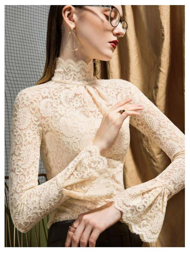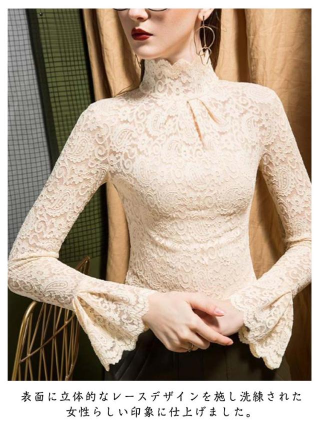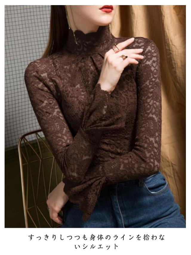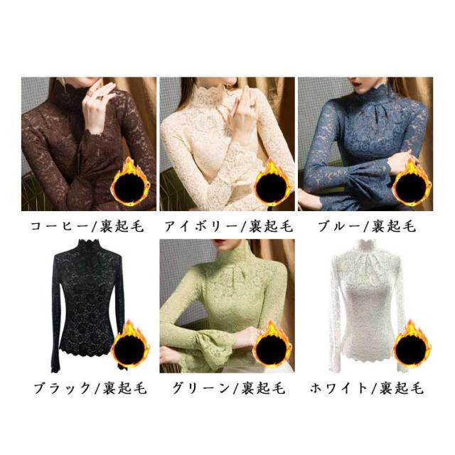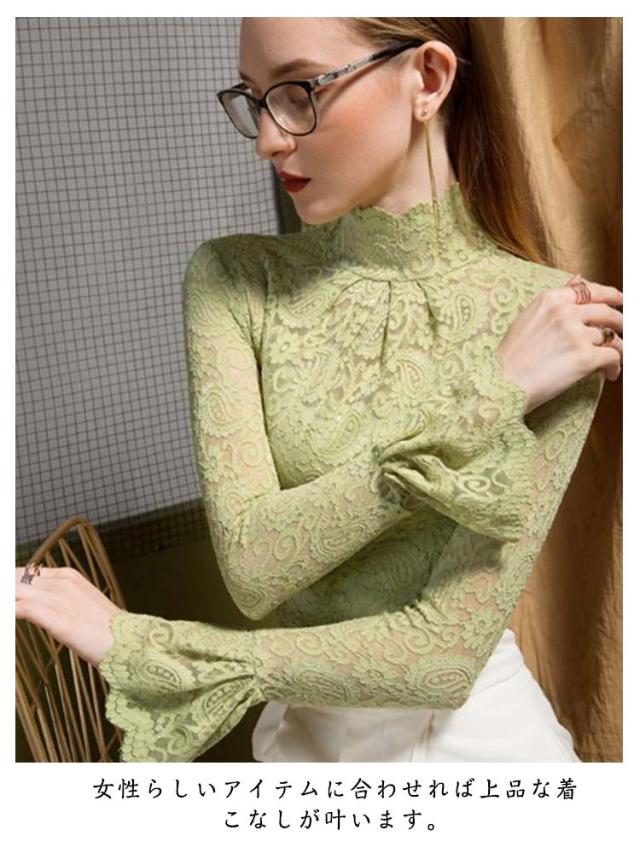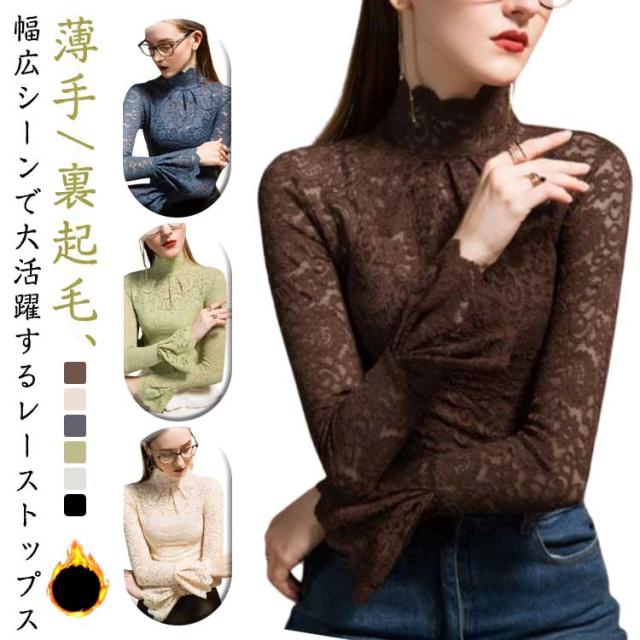 レースインナー レースブラウス 薄手 レディース 透け感 無地 インナーシャツ フリル袖 レーストップス タートルネック 長袖 インナー 重ね着 裏起毛 シンプル チュールレース 女性 フォーマル かわいい カジュアル おしゃれ レイヤード 大人 レイヤード 春秋 冬