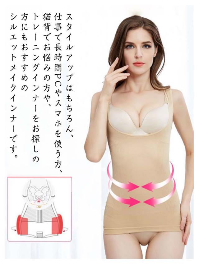 | 着るだけ美くびれ&美胸!! 脇肉・贅肉のはみ肉、お腹の段々腹などギュギュッと抑え、すっきりとしたくびれ&ボディラインに。 サイド部分のくびれ加工が、体をしっかりと加圧。たるみをキュッと引き締めます。 脇に流れるバストをアンダーからしっかりと持ち上げてバストを寄せ上げる。 動きやすく、優しい着心地なのにしっかり補正。 スタイルアップはもちろん、仕事で長時間PCやスマホを使う方、猫背でお悩みの方や、トレーニングインナーをお探しの方にもおすすめのシルエットメイクインナーです。 ヨガやフィットネス、ストレッチなどにも最適! | |