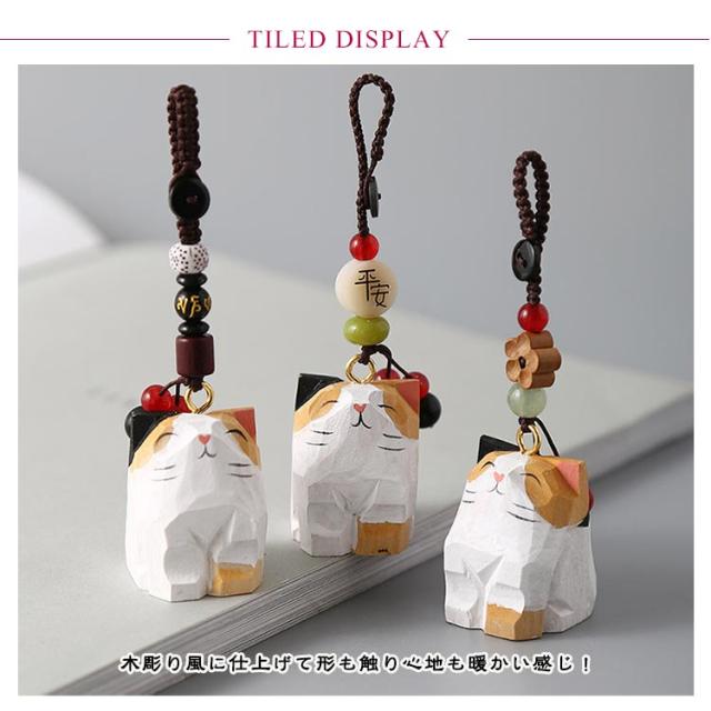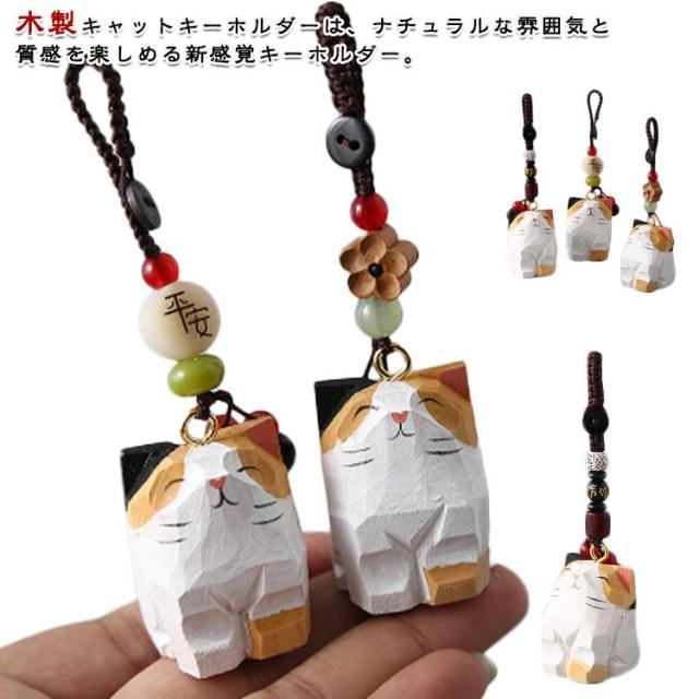 ハンドメイド プレゼント ねこ 木彫り 猫 チャーム 木製 キャット バッグチャーム 置物 ミニチュア キーホルダー ネコ オブジェ 手作り 癒し デスク 玄関小物 インテリア飾り 三毛猫 可愛い 母の日 ギフト 誕生日 猫 猫グッズ プチギフト