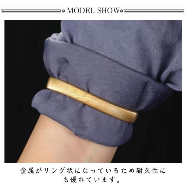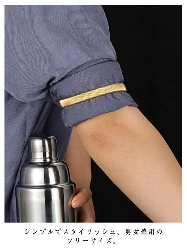 | 袖を長さを簡単に調整できるアームバンド 腕に通すだけで簡単に装着が可能です。 シンプルでスタイリッシュ、男女兼用のフリーサイズ。 ビジネスシーンでもカジュアルシーンでも使用可能です。 金属がリング状になっているため耐久性にも優れています。 ワンポイントのおしゃれアイテムとして、ブレスレット感覚での着用もおすすめです。 弾力性があり肌にやさしいため、長時間でも快適に使用できます♪ | |