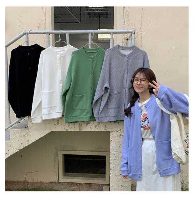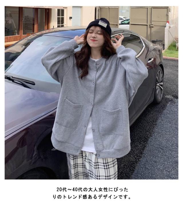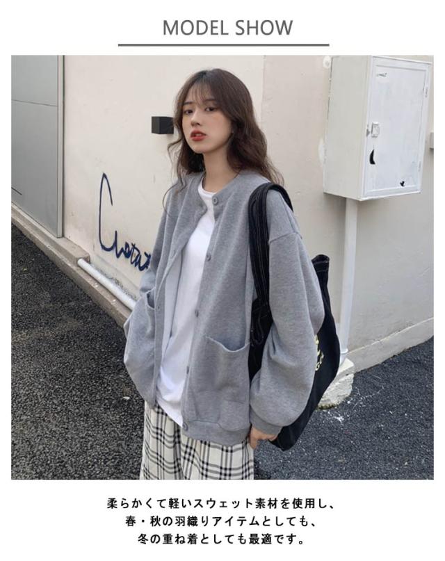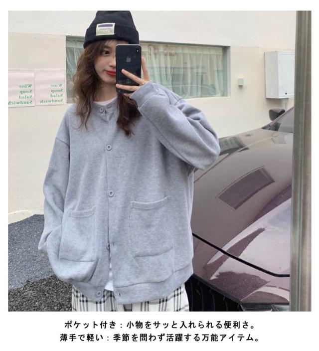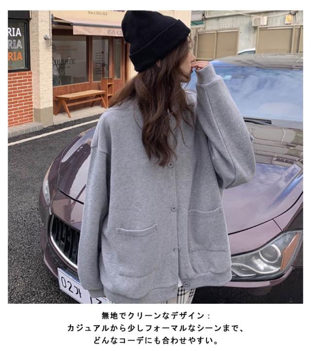 ポケット付き 柔らかい アウター カーディガン 大人 開襟 レディース ニット トップス ジャケット ゆったり 長袖 羽織り 着痩せ 着回し 体型カバー 秋 スウェット スウェット シンプル カジュアル 無地 薄手 オーバーサイズ 20代 30代