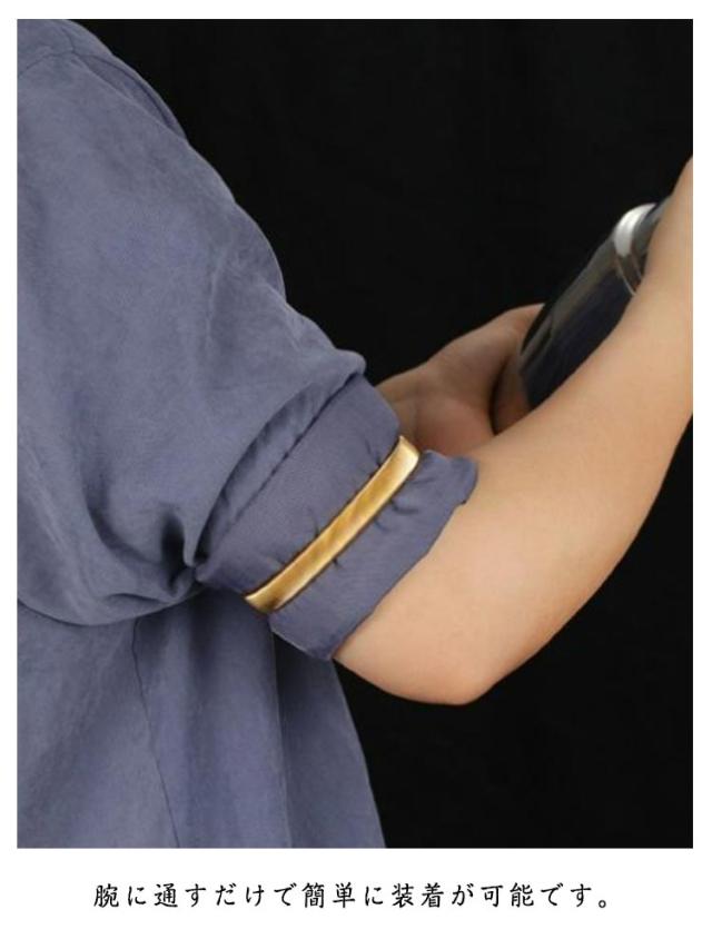 | 袖を長さを簡単に調整できるアームバンド 腕に通すだけで簡単に装着が可能です。 シンプルでスタイリッシュ、男女兼用のフリーサイズ。 ビジネスシーンでもカジュアルシーンでも使用可能です。 金属がリング状になっているため耐久性にも優れています。 ワンポイントのおしゃれアイテムとして、ブレスレット感覚での着用もおすすめです。 弾力性があり肌にやさしいため、長時間でも快適に使用できます♪ | |