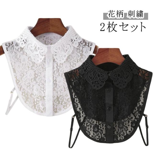 ブラウス 刺繍 つけえり レース ブラウス 花柄 2枚セット ドレスアップ つけえり 結婚式 付け襟 襟 コーディネイト フリル ネック ハイネック つけ襟 ゴージャス 重ね着風 スタイ スタンドカラー 大人可愛い レース襟 レースカラー ホワイト ブラック