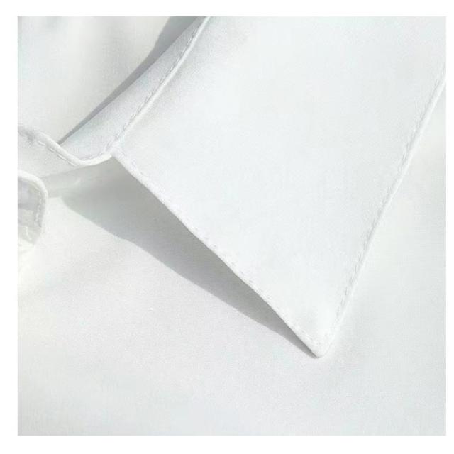 | ゆるっとお洒落+着回し力。襟付きノースリーブシャツ♪ 薄手なのに透けません。1枚ではもちろん、ジャケットやカーディガンのインナー使いなど着回しアレンジも◎ 洗練されたシンプルなデザイン、春夏のリクルートにも大活躍するから重宝します。 さらりとした柔らかな生地、シワになりくく、洗濯okなので、お手入れかんたん。 動きやすいアームホール、裾はラウンドしたシャツデザインの長め丈です。 | |