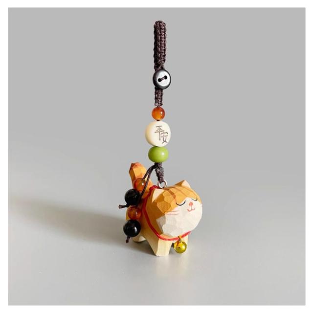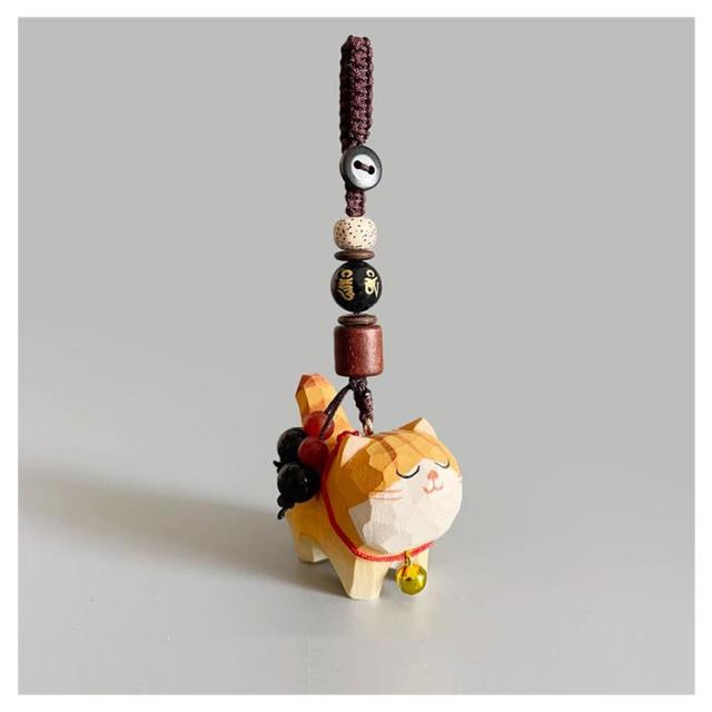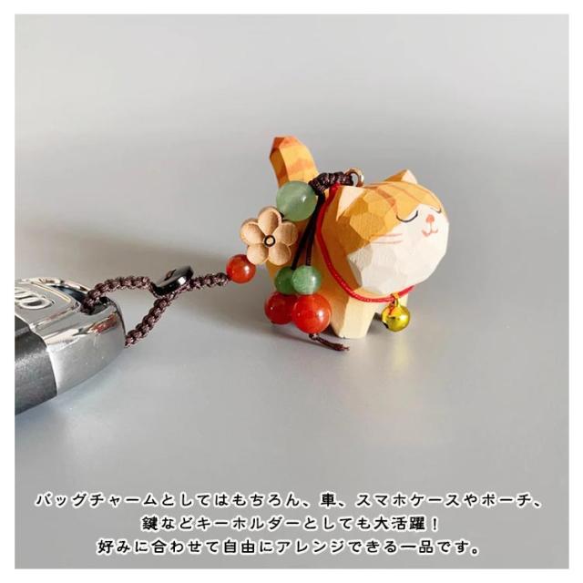 鈴猫 木彫り ミニチュア バッグチャーム オブジェ 木製招き猫ねこ チャーム 猫 ハンドメイド 猫 手作り 木製 キーホルダー 置物 癒し デスク 玄関小物 インテリア飾り キャット 可愛い 母の日 ギフト ねこ プレゼント 猫グッズ バッグ 鞄 掛けられる