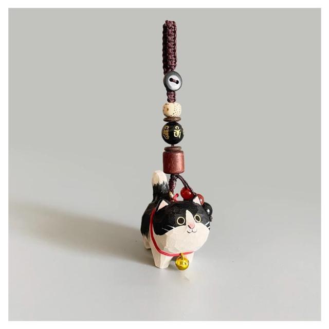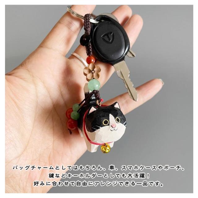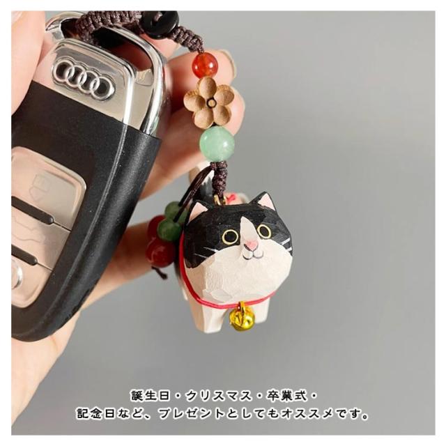 ねこ キャット 木彫り チャーム 木製 猫 ネコ バッグチャーム 癒し 黒猫 ハンドメイド 鈴猫 玄関小物 鈴付き キーホルダー 手作り 誕生日 オブジェ デスク インテリア飾り 木製招き猫ねこ 可愛い 母の日 ギフト 猫 プレゼント 猫グッズ 黒 ブラック