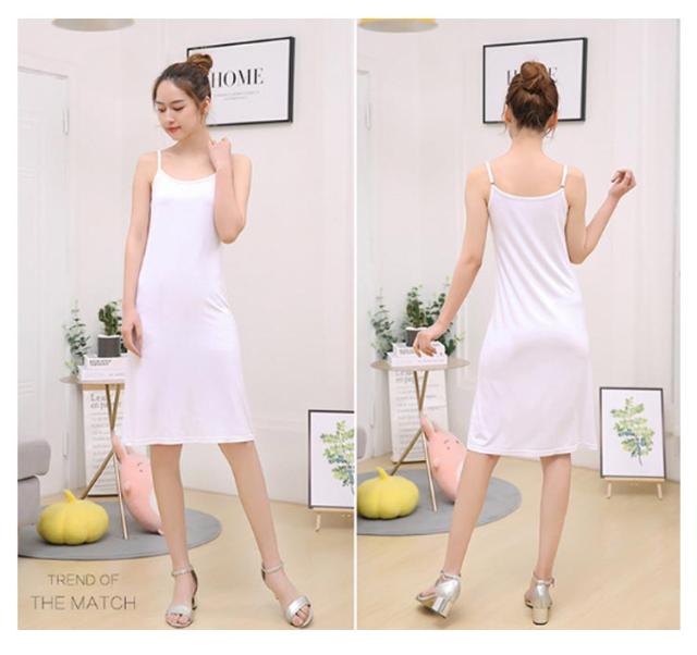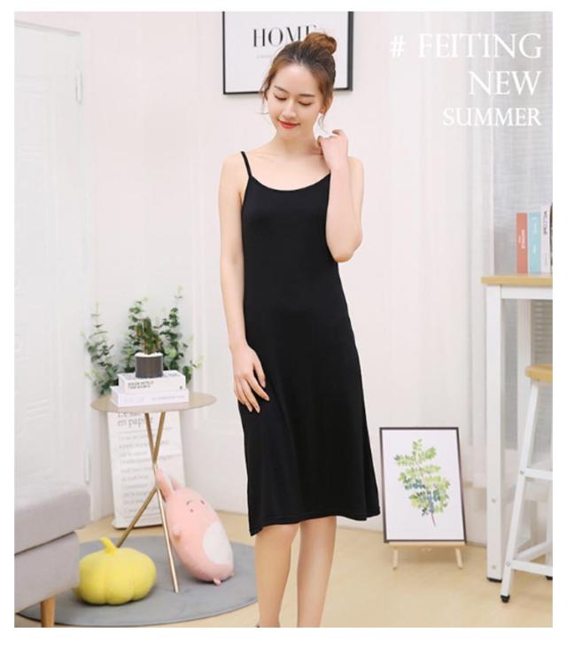 アジャスト可能ストラップ モーダル混 ストレッチ 肌なじみ良い 夏用 ペチコート レディース 大きいサイズ 透けない インナーワンピース ゆったり ストラップ長さ調節可能 透け防止 シンプル 伸縮性 体型カバー