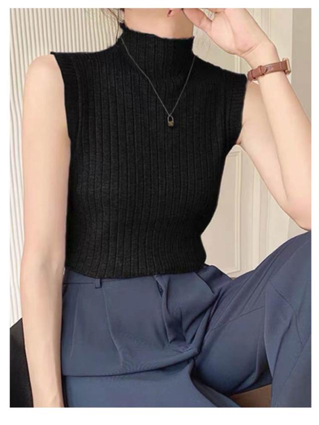 ノースリーブ ニットトップス ハイネック タンクトップ シンプル Tシャツ トップス プリーツ ストレッチ レイヤード 秋 春 ハイネックニット 夏 ノースリーブ 全6色 サマーニット