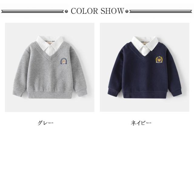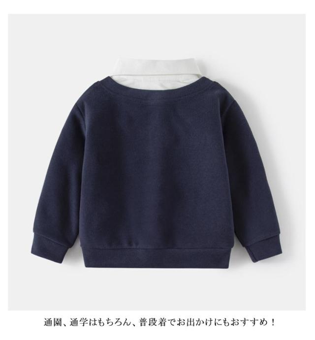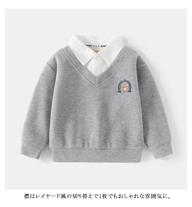 110cm 100cm フェイクレイヤード 120cm 130cm 男の子 トップス レイヤード風 ベビー 90cm レイヤード風 襟付き 子ども 秋冬 キッズ トレーナー プルオーバー 通園 通学 スウェット 幼稚園 運動会 カジュアル ネイビー グレー