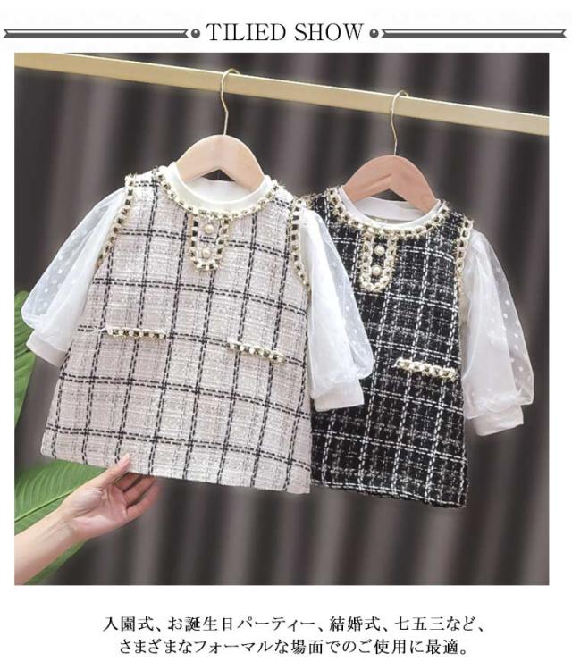 通園 通学 赤ちゃん 子供服 ベビー ベビー フォーマル 発表会 春秋 セットアップ 入園式 長袖 トップス ワンピース ツイード 女の子 2点セット パーティー 結婚式 七五三 お出かけ 80cm 90cm 100cm 110cm